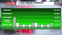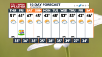 EXTENDED FORECAST: Conditions dry up and warm up throughout the week with highs in the 60s Friday and then upper 60s Saturday. We cool back down to near normal temperatures with a chance of rain returning Sunday. It will also be breezy for this upcoming weekend.