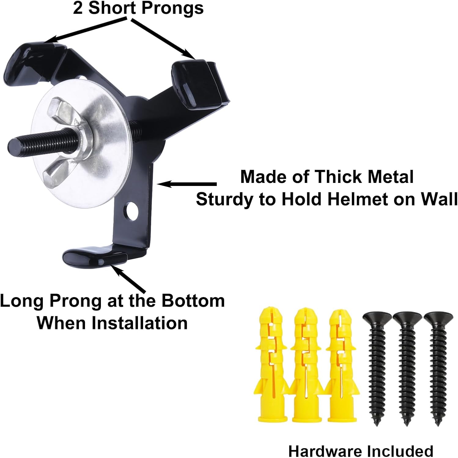 Sturdy & Protective: Made from solid, welded carbon steel, this wall display securely holds your helmet without bending or breaking. The thick rubber cap on the prong prevents scratches on your helmet.