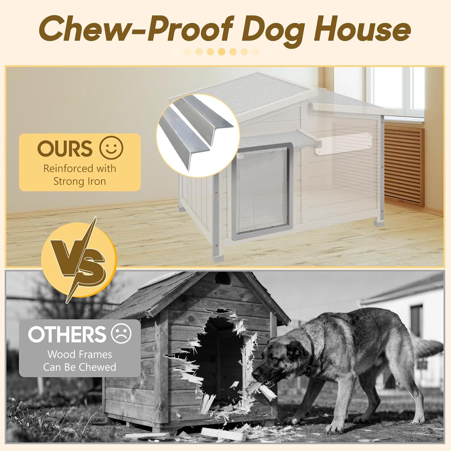 <br> Product Dimensions : 43.5 x 29.5 x 33.5 inches; 28.66 Pounds <br> Item model number : GWH-69NEW <br> Date First Available : November 4, 2025 <br> Manufacturer : Gowoodhut <br> ASIN : B0FZBMXHDD <br> Best Sellers Rank: #46,801 in Pet Supplies (See Top 100 in Pet Supplies) #72 in Dog Houses <br> Customer Reviews: 4.0 4.0 out of 5 stars (23) var dpAcrHasRegisteredArcLinkClickAction; P.when('A', 'ready').execute(function(A) { if (dpAcrHasRegisteredArcLinkClickAction !== true) { dpAcrHasRegisteredArcLinkClickAction = true; A.declarative( 'acrLink-click-metrics', 'click', { "allowLinkDefault": true }, function (event) { if (window.ue) { ue.count("acrLinkClickCount", (ue.count("acrLinkClickCount") || 0) + 1); } } ); } }); P.when('A', 'cf').execute(function(A) { A.declarative('acrStarsLink-click-metrics', 'click', { "allowLinkDefault" : true }, function(event){ if(window.ue) { ue.count("acrStarsLinkWithPopoverClickCount", (ue.count("acrStarsLinkWithPopoverClickCount") || 0) + 1); } }); }); <br>【Dimensions】 The interior size of the dog house is 38.2" x 24.9". Please note that the door opening measures 19.6" x 11.87". We recommend measuring your dog’s shoulder width and body length before purchasing to ensure a proper fit and avoid any sizing issues.<br>【Chew-Resistant & Weatherproof Design】 Crafted from high-quality fir wood and reinforced with a durable iron frame, this outdoor wooden dog house offers exceptional strength and stability for small and medium dogs. Its chew-proof, weatherproof construction ensures lasting protection from rain, wind, and snow—making it the perfect backyard, patio, or garden dog kennel for year-round comfort and durability.<br>【Openable Roof & Easy Cleaning】 Designed with convenience in mind, this wooden dog house features a hinged roof that opens easily for quick access and hassle-free cleaning. The removable floor allows you to keep your pet’s space fresh and hygienic at all times. Whether indoors or outdoors, this smart design ensures comfort for your dog and effortless maintenance for you.<br>【Durable Wooden Design】 This outdoor dog house is made from strong fir wood with a raised floor to keep your pup dry and cozy. Perfect for backyards, patios, porches, or even indoor corners, it offers a safe, comfortable space your dog can enjoy year-round. Ideal for small and medium dogs who love relaxing in their own cozy retreat.<br>【Raised & Ventilated Design】Designed with elevated legs and non-slip pads, this dog house with raised floor stays stable on uneven surfaces while allowing for proper ventilation underneath. Perfect for use as an outdoor dog shelter in wet or hot climates to promote airflow and keep pets dry and cool.<br>【Easy Assembly】 Designed for hassle-free setup, this wooden dog house comes with pre-drilled holes and clear step-by-step instructions. Perfect for backyards, patios, porches, or indoor areas, it assembles in minutes and provides a cozy, weatherproof retreat your furry friend will love all year long.