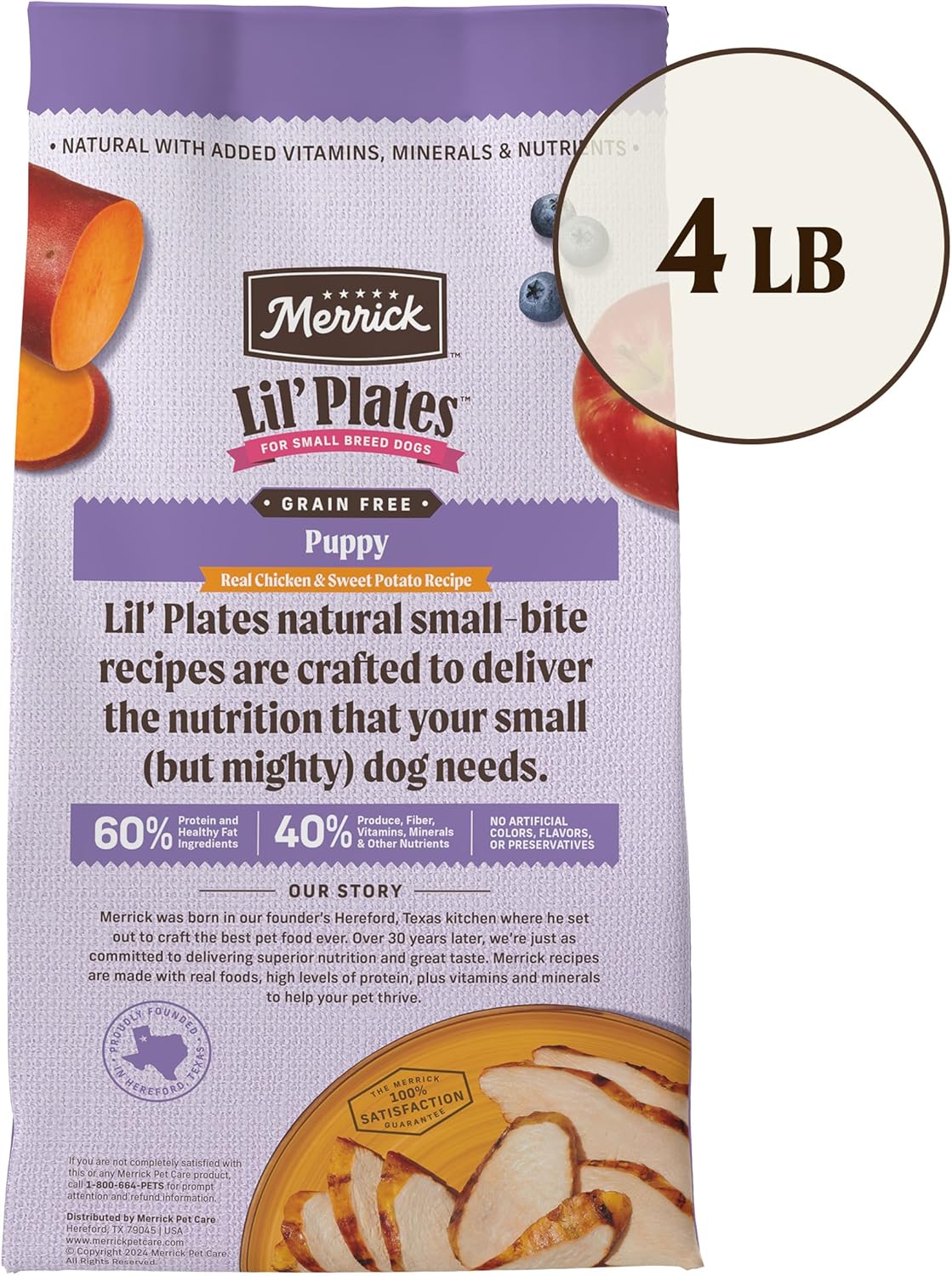 Merrick Lil’ Plates Grain Free Real Chicken And Sweet Potato Puppy Recipe, Premium Dry Dog Food Kibble For Small Breed Puppies