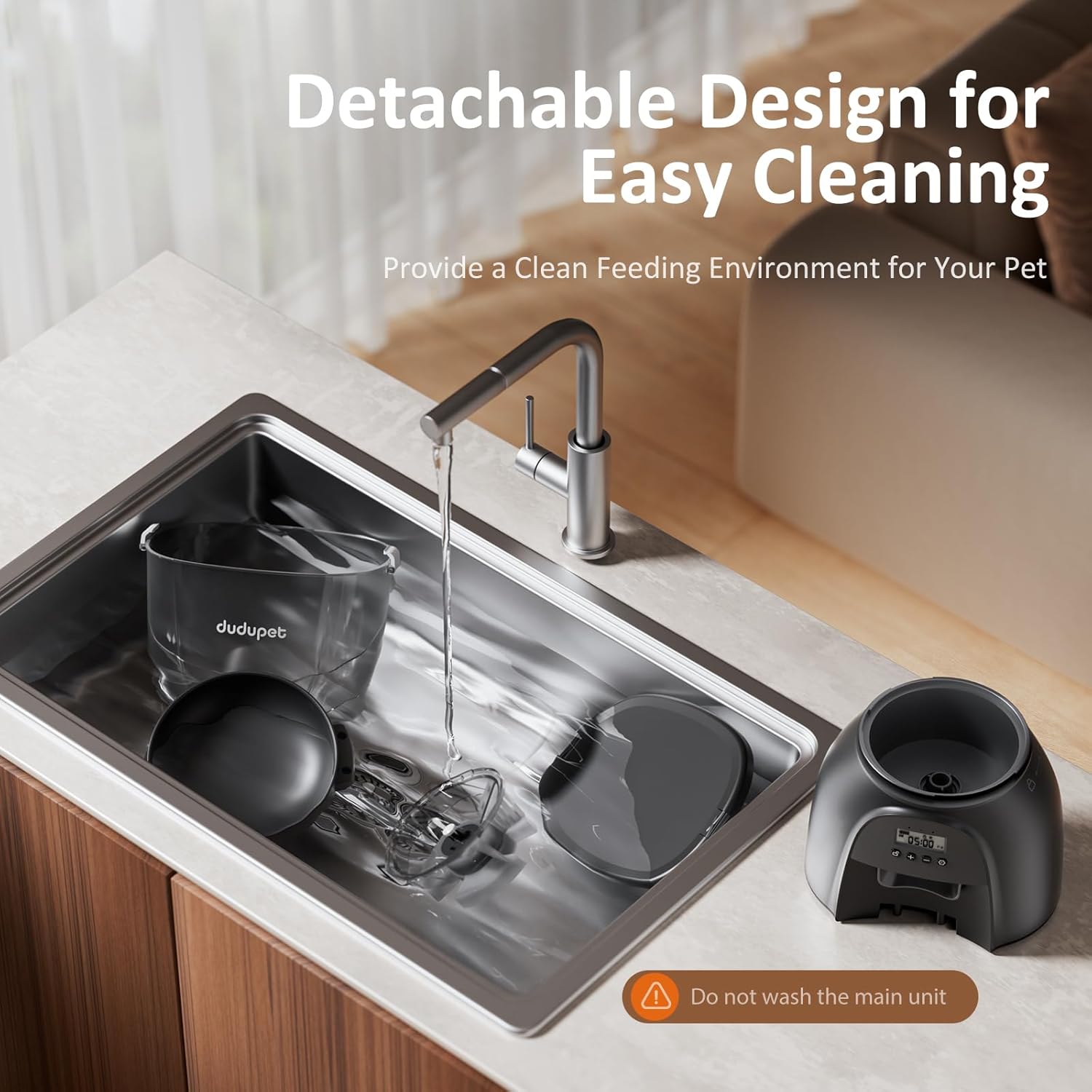 <br> Product Dimensions : 6 x 8 x 12 inches; 3.66 Pounds <br> Item model number : DU-F11 <br> Date First Available : May 29, 2025 <br> Manufacturer : DUDUPET <br> ASIN : B0FB8MQJS2 <br> Best Sellers Rank: #37,485 in Pet Supplies (See Top 100 in Pet Supplies) #123 in Automatic Cat Feeders <br> Customer Reviews: 4.5 4.5 out of 5 stars (424) var dpAcrHasRegisteredArcLinkClickAction; P.when('A', 'ready').execute(function(A) { if (dpAcrHasRegisteredArcLinkClickAction !== true) { dpAcrHasRegisteredArcLinkClickAction = true; A.declarative( 'acrLink-click-metrics', 'click', { "allowLinkDefault": true }, function (event) { if (window.ue) { ue.count("acrLinkClickCount", (ue.count("acrLinkClickCount") || 0) + 1); } } ); } }); P.when('A', 'cf').execute(function(A) { A.declarative('acrStarsLink-click-metrics', 'click', { "allowLinkDefault" : true }, function(event){ if(window.ue) { ue.count("acrStarsLinkWithPopoverClickCount", (ue.count("acrStarsLinkWithPopoverClickCount") || 0) + 1); } }); }); <br>【Spacious 5L Food Storage】DUDUPET cat feeder with large 5L (1.3 Gallons / 21 Cups) container holds enough dry food to last several days, saving you from daily refills. Whether you’re working late, enjoying a weekend getaway, or caring for multiple pets, your furry friends will always be fed on time. Recommended for dry kibble sizes between 0.07 to 0.55 inches.<br>【Programmable Timed Feeding】DUDUPET cat food dispenser is easily program 1–6 meals per day with 1–20 portions each to match your pet’s age, size, and dietary needs. Create a consistent feeding routine that promotes healthier eating habits—perfect for weight management and multi-pet households. For the cat food pellet size around 0.35-0.39 inch, 1 portion ≈ 0.62 oz (≈ 3 Tbsp / 0.2 cup) of dry food. For detailed size comparisons, refer to the product images.<br>【User Friendly Operation】The auto pet feeder with Intuitive LCD screen makes setup and programming a breeze, and press both "+ & -"together to manually dispense 1 portion; All food-contact components, including the food tank and food bowl are detachable and washable, making it easy to keep your feeder fresh and hygienic. Spend less time cleaning and more time with your pet. The 12-hour clock is easy to program and understand.<br>【Dual Power Supply】DUDUPET automatic cat feeder designed with a 5V DC adapter plus 3 optional D-cell batteries (not included), this feeder works reliably even during unexpected power outages. Your pet’s feeding schedule stays on track at all times. Recommended to use both battery and adapter for uninterrupted operation.<br>【Fresh in Sealed Space】A lockable lid, sealed food container, built-in desiccant box, The included desiccant bag in the cat feeder automatic keeps the cat food fresh and crispy. The anti-jam dispensing system ensures smooth, accurate portions without clogs—every meal delivered just right. Easily keep your cat or dog fed during long weekends and short business trips; Get the peace of mind of a full and happy pet.<br>【𝐖𝐚𝐫𝐦 𝐓𝐢𝐩𝐬】𝐖𝐡𝐞𝐧 𝐈𝐧𝐬𝐭𝐚𝐥𝐥𝐢𝐧𝐠 𝐭𝐡𝐞 𝐩𝐫𝐨𝐝𝐮𝐜𝐭, 𝐩𝐥𝐞𝐚𝐬𝐞 𝐦𝐚𝐤𝐞 𝐬𝐮𝐫𝐞 𝐭𝐨 𝐚𝐥𝐢𝐠𝐧 𝐭𝐡𝐞 𝐬𝐥𝐨𝐭𝐬 𝐨𝐟 𝐭𝐡𝐞 𝐫𝐨𝐭𝐨𝐫 𝐰𝐢𝐭𝐡 𝐭𝐡𝐞 𝐛𝐚𝐬𝐞, 𝐭𝐡𝐞𝐧 𝐫𝐨𝐭𝐚𝐭𝐞 𝐭𝐡𝐞 𝐛𝐥𝐚𝐝𝐞 𝐮𝐧𝐭𝐢𝐥 𝐢𝐭 𝐢𝐬 𝐬𝐞𝐜𝐮𝐫𝐞𝐥𝐲 𝐥𝐨𝐜𝐤𝐞𝐝 𝐢𝐧 𝐩𝐥𝐚𝐜𝐞 𝐚𝐧𝐝 𝐜𝐚𝐧𝐧𝐨𝐭 𝐦𝐨𝐯𝐞 𝐚𝐧𝐲𝐦𝐨𝐫𝐞 𝐭𝐨 𝐩𝐫𝐞𝐯𝐞𝐧𝐭 𝐢𝐭 𝐟𝐫𝐨𝐦 𝐩𝐨𝐩𝐩𝐢𝐧𝐠 𝐨𝐮𝐭 𝐨𝐫 𝐬𝐡𝐢𝐟𝐭𝐢𝐧𝐠, 𝐰𝐡𝐢𝐜𝐡 𝐦𝐚𝐲 𝐜𝐚𝐮𝐬𝐞 𝐝𝐢𝐬𝐩𝐞𝐧𝐬𝐞 𝐟𝐚𝐢𝐥𝐮𝐫𝐞.