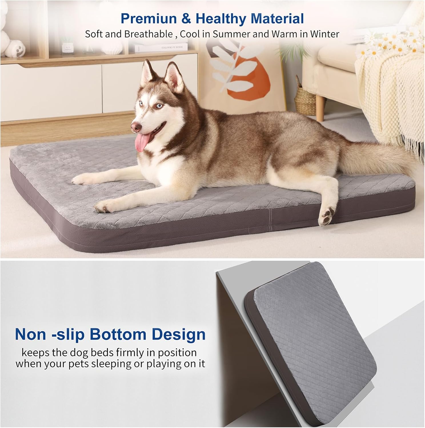 <br> Product Dimensions : 47 x 39 x 4 inches; 8.8 Pounds <br> Date First Available : April 22, 2022 <br> Manufacturer : JoicyCo <br> ASIN : B09YLSRX7M <br> Best Sellers Rank: #22,829 in Pet Supplies (See Top 100 in Pet Supplies) #310 in Dog Beds <br> Customer Reviews: 4.5 4.5 out of 5 stars (620) var dpAcrHasRegisteredArcLinkClickAction; P.when('A', 'ready').execute(function(A) { if (dpAcrHasRegisteredArcLinkClickAction !== true) { dpAcrHasRegisteredArcLinkClickAction = true; A.declarative( 'acrLink-click-metrics', 'click', { "allowLinkDefault": true }, function (event) { if (window.ue) { ue.count("acrLinkClickCount", (ue.count("acrLinkClickCount") || 0) + 1); } } ); } }); P.when('A', 'cf').execute(function(A) { A.declarative('acrStarsLink-click-metrics', 'click', { "allowLinkDefault" : true }, function(event){ if(window.ue) { ue.count("acrStarsLinkWithPopoverClickCount", (ue.count("acrStarsLinkWithPopoverClickCount") || 0) + 1); } }); }); <br>Soft Scratch Resistant Dog Bed: Premium soft fleece material cover, durable, no shedding, not easy to stick pet's fur, strong enough to stand the scratches (not bite friendly), made from a high quality fleece so needn't worry about the fabric flying into nasal cavity and causing discomfort.<br>Orthopedic Support Pet Bed: The high density orthopedic foam inner have a good rebounce, soft and won't concaved, won't be out of shape after a long time use. Orthopedic designed to provide a cozy support for your pets' spine and joints, makes your pets sleeping well.<br>Safe Non-Slip and Easy Clean Dog Beds: The bottom was desinged with non slip material to keep the pet beds in position, makes it safe for your pets; The cover is easy to remove with the zipper and is 100% allow machine washable and tumble dry safe, suitable for house floor, car or as a outdoor travel dog bed.<br>Sizes Available: Medium: 31.5 x 23.6 x 3 inches; Large: 40 x 35 x 4 inchs; Jumbo: 47 x 39 x 4 inches; Perfectly for Indoor or Outdoor Use of Different Sizes Dogs.<br>Multi-Use Dog Beds for Extra Large Dogs: Super soft orthopedic foam pet beds for medium, large, and extra large dogs; Suitable for cats, dogs indoor or outdoor use, heathy and breathable, cool in summer and warm in winter, universal used in pet cages, rear seats in cars, furniture and seats.