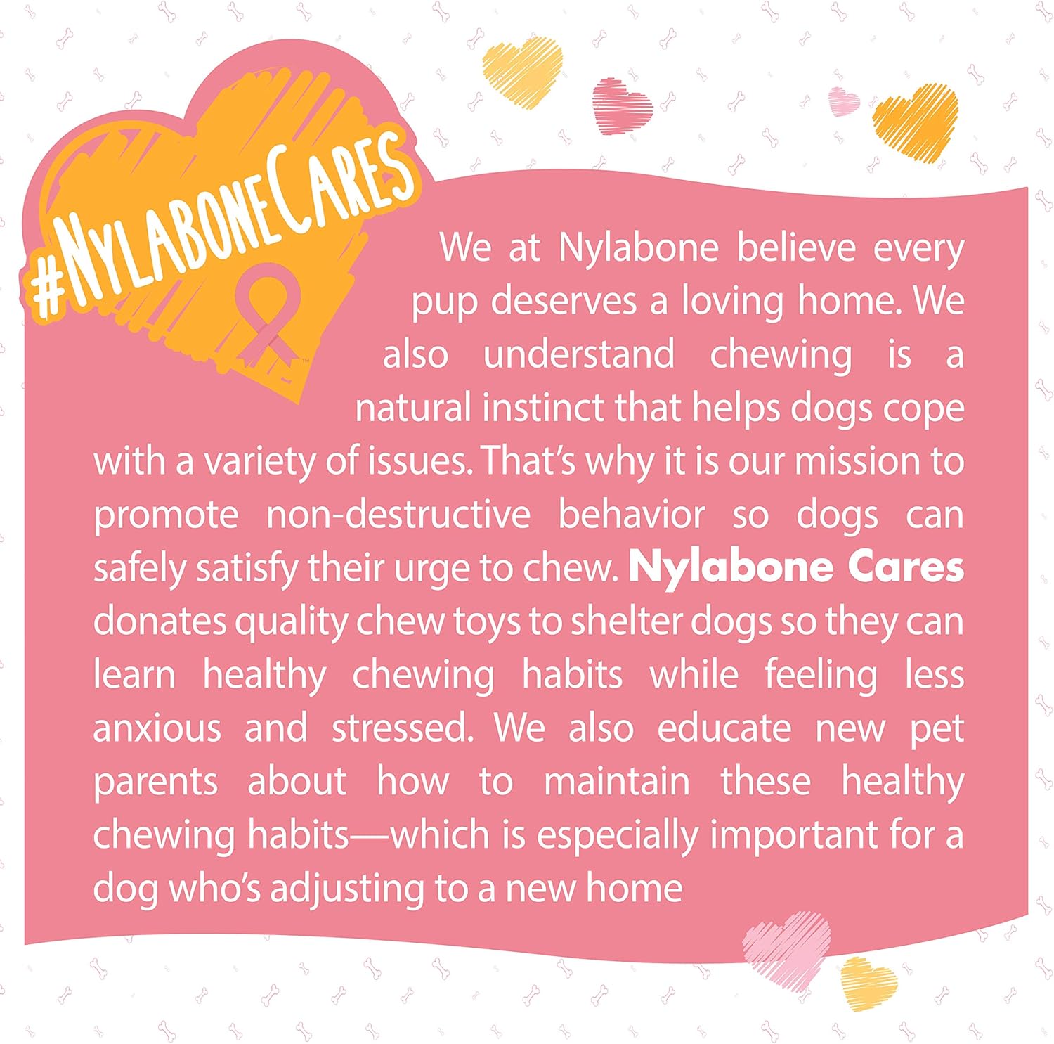 SUPPORT BREAST CANCER AWARENESS – For every custom-made pink chew toy purchased, Nylabone will donate $1 to National Breast Cancer Foundation, Inc