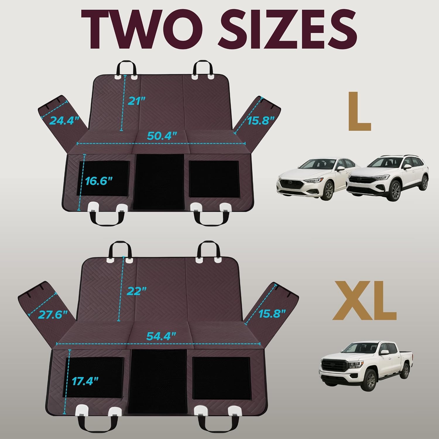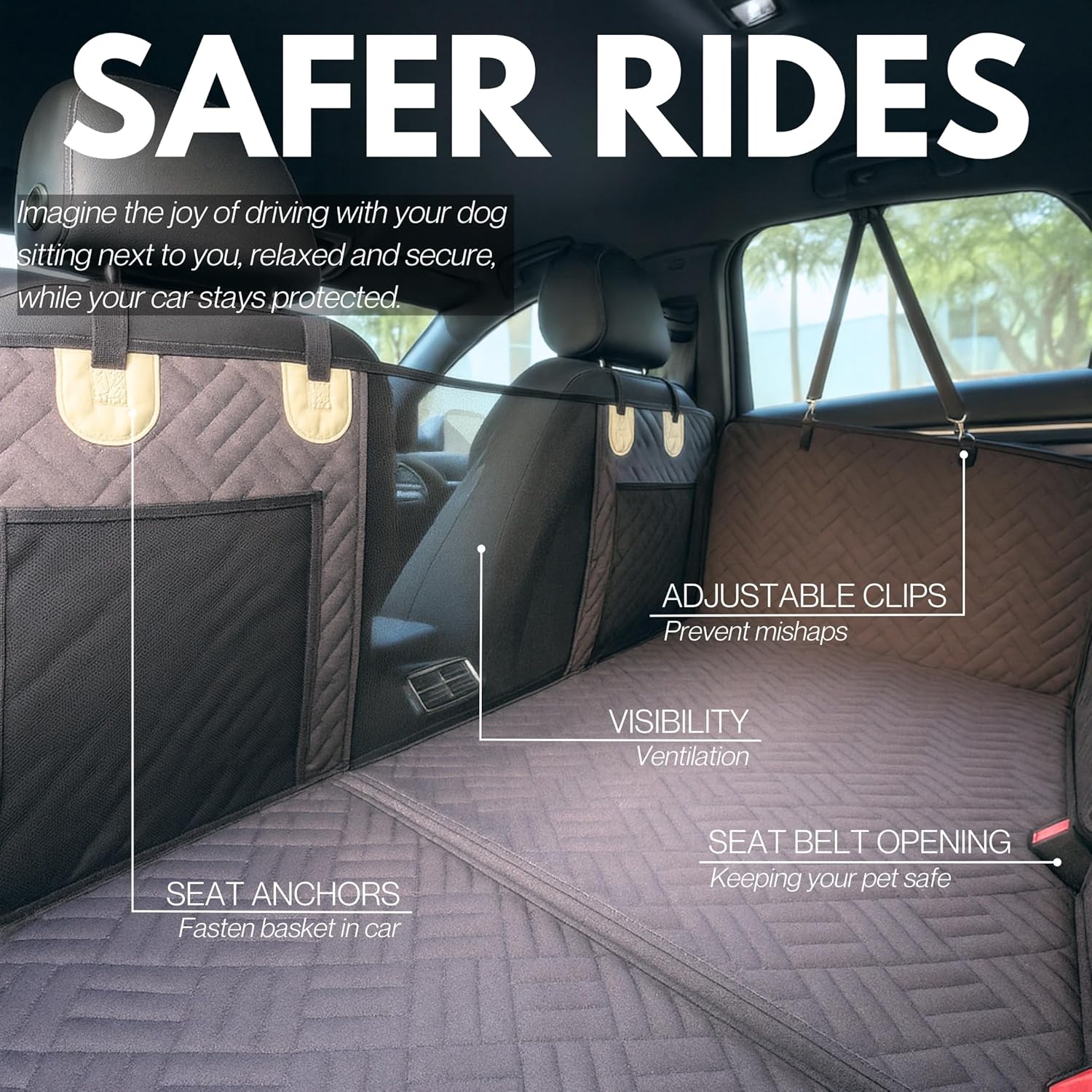 <br>Expanded Space & Secure Support – Holds Up to 400 lbs: Transform your back seat into a safe and spacious area for your dog with our reinforced L seat extender. Designed for large and extra-large dogs and multi-pet families, its sturdy hard-bottom structure supports up to 400 lbs, preventing falls into the footwell and ensuring maximum stability on every trip.<br>Premium Comfort with High-Quality Materials: Made with 8 layers of protection, including 600D Oxford fabric, high-density foam padding, and a non-slip base, our back seat extender is waterproof, scratch-resistant, and ultra-comfortable. Provides firm yet cushioned support, perfect for long road trips without stress.<br>Anti-Slip & Secure Fit for a Safer Ride: No more slipping and shifting! Our anchor system, non-slip rubber backing, and removable support plates ensure the cover stays firmly in place, keeping your pet safe and secure while you drive.<br>Breathable Mesh Window & Storage Pockets: The front mesh window improves airflow and reduces your dog’s anxiety by allowing clear visibility of you during the ride. Plus, it includes large storage pockets to keep toys, treats, and leashes organized and within reach.<br>Easy Installation & Convenient Storage: Designed for quick, hassle-free installation, simply attach the adjustable straps and secure the anchors in seconds. Its foldable design allows for compact storage in the included travel bag, saving space when not in use.