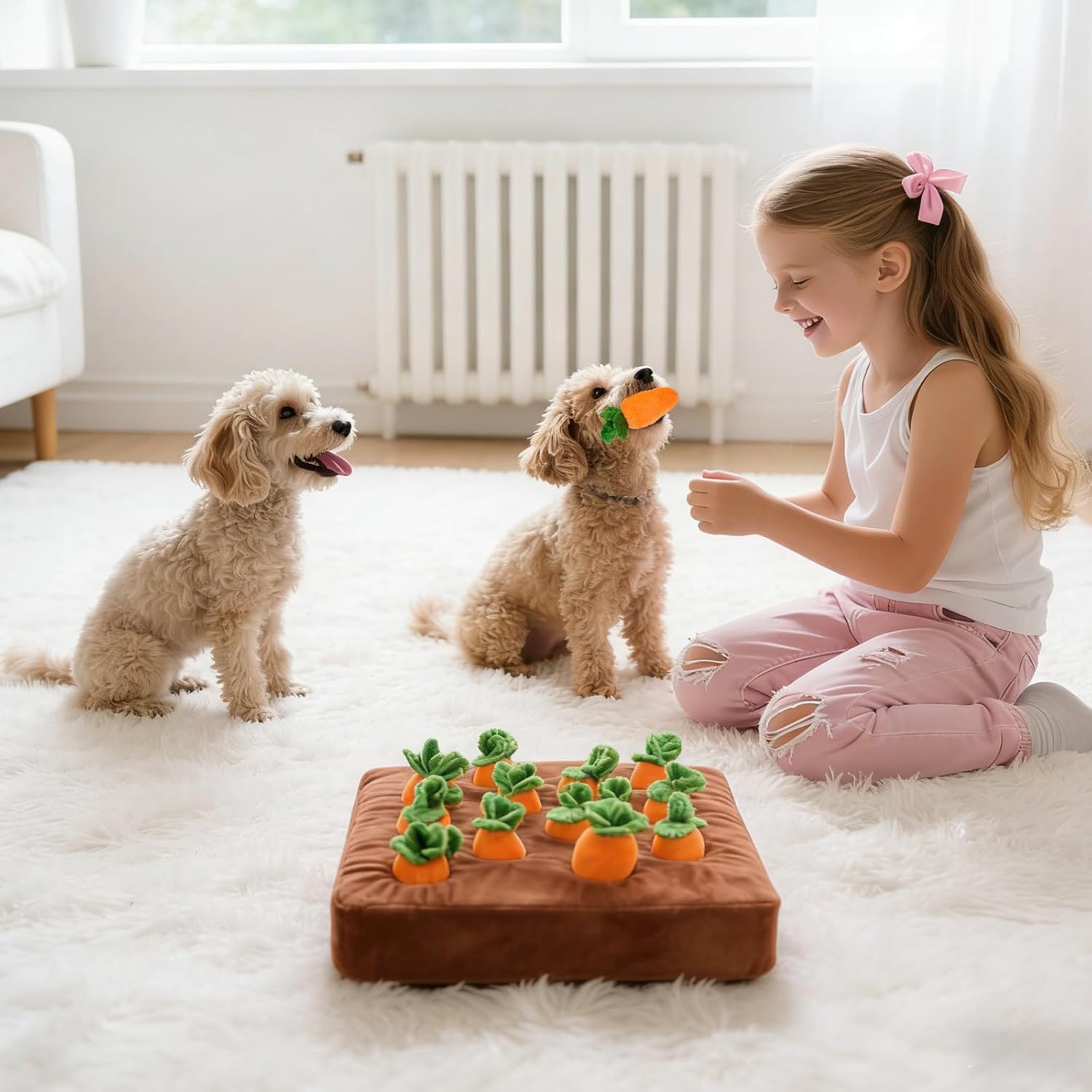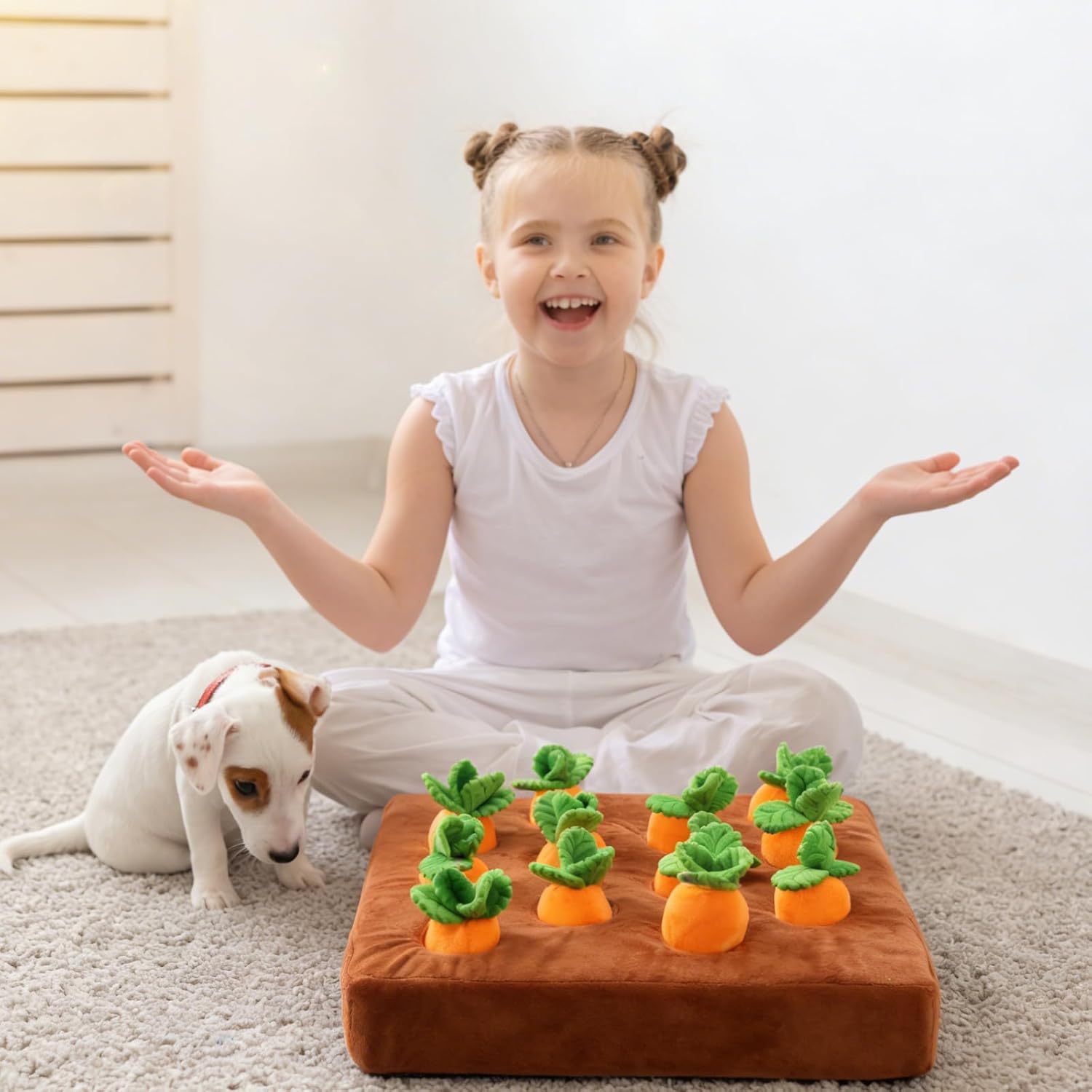 Puzzle Toy: Hide treats inside the carrot holes to stimulate your dog’s natural foraging instincts. This interactive carrot patch dog toy promotes cognitive development, reduces boredom, and enhances your pet’s intelligence through fun puzzle play.