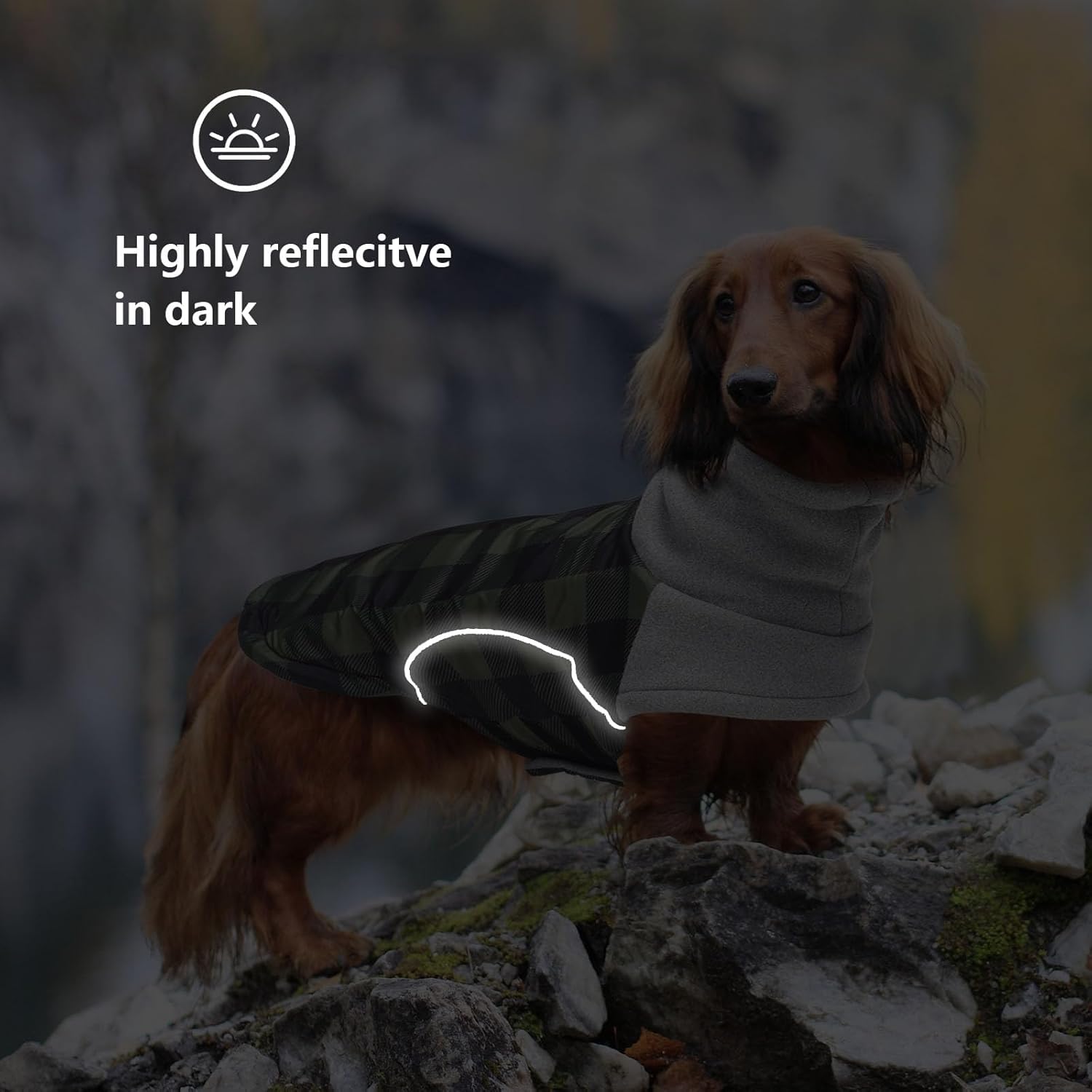 【Waterproof Dachshund Coat 】-The Dachshund coat is a super comfortable double layed coat designed to keep your dog dry ,warm and clean in wet cold winter or fall. Made from a coated polyester outer fabric which is waterproof, windproof and washable. and padded with soft breathable cotton lining.