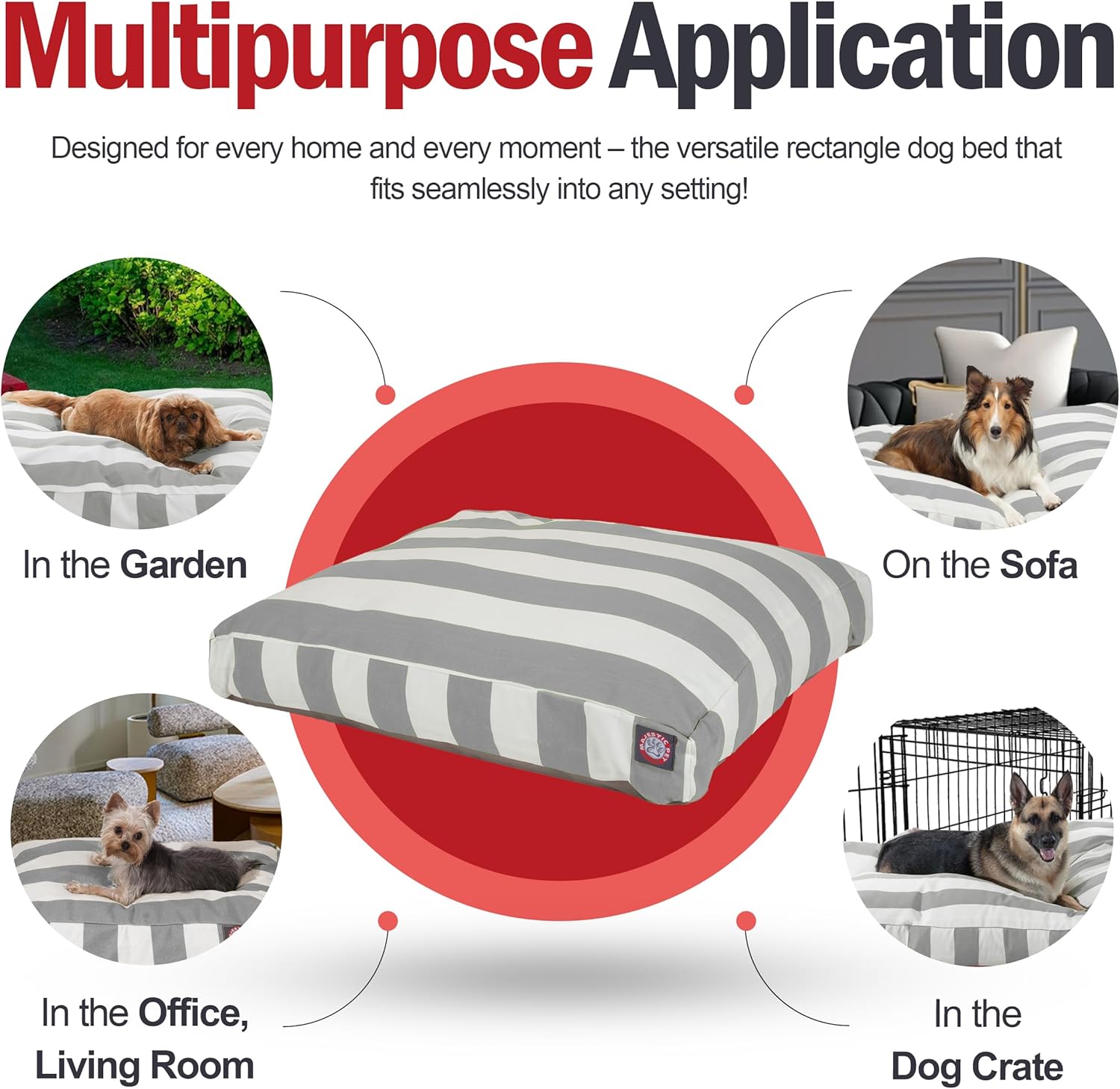 <br> Product Dimensions : 36 x 29 x 5 inches; 8 Pounds <br> Item model number : 78899551449 <br> Date First Available : October 16, 2024 <br> Manufacturer : Majestic Pet Products, Inc. <br> ASIN : B0DK4QGWYB <br> Best Sellers Rank: #60,429 in Pet Supplies (See Top 100 in Pet Supplies) #776 in Dog Beds <br> Customer Reviews: 4.2 4.2 out of 5 stars (699) var dpAcrHasRegisteredArcLinkClickAction; P.when('A', 'ready').execute(function(A) { if (dpAcrHasRegisteredArcLinkClickAction !== true) { dpAcrHasRegisteredArcLinkClickAction = true; A.declarative( 'acrLink-click-metrics', 'click', { "allowLinkDefault": true }, function (event) { if (window.ue) { ue.count("acrLinkClickCount", (ue.count("acrLinkClickCount") || 0) + 1); } } ); } }); P.when('A', 'cf').execute(function(A) { A.declarative('acrStarsLink-click-metrics', 'click', { "allowLinkDefault" : true }, function(event){ if(window.ue) { ue.count("acrStarsLinkWithPopoverClickCount", (ue.count("acrStarsLinkWithPopoverClickCount") || 0) + 1); } }); }); <br>[Orthopedic Benefits for Aging Pets] Our Orthopedic dog bed is crafted with high-grade memory foam to provide unmatched support for your pet, reducing joint pain and improving their quality of life. This flat dog bed is designed to cradle their body and melt away joint pain. It is essential for aging or arthritic dogs seeking comfort and relief.<br>[Supreme Comfort and Support] Indulge your pet with the ultimate relaxation experience with our dog bed memory foam; this foam dog bed is specially designed to cushion and support your dog’s joints, preventing discomfort—the ultimate sleep haven for any pet, big or small.<br>[Ease of Maintenance] Featuring a memory foam dog bed with a removable washable cover, our product ensures hassle-free cleaning, keeping your home odor-free and your pet’s space hygienic. This dog crate bed washable is ideal for busy pet owners who value convenience without compromising their pet’s comfort.<br>[Durable Design] Constructed from robust polyester and memory foam, this durable dog bed withstands the playful antics of your pet, ensuring long-lasting comfort. Invest in a rectangle dog bed that survives the enthusiasm of your furry friend while offering a cozy resting place.<br>[Stress-free Upkeep] Worry less about accidents or spills with our water-resistant dog bed, a must-have feature that keeps the foam clean and dry. This dog crate bed is perfect for puppies in training or senior dogs with incontinence issues, ensuring a hygienic sleeping environment at all times.