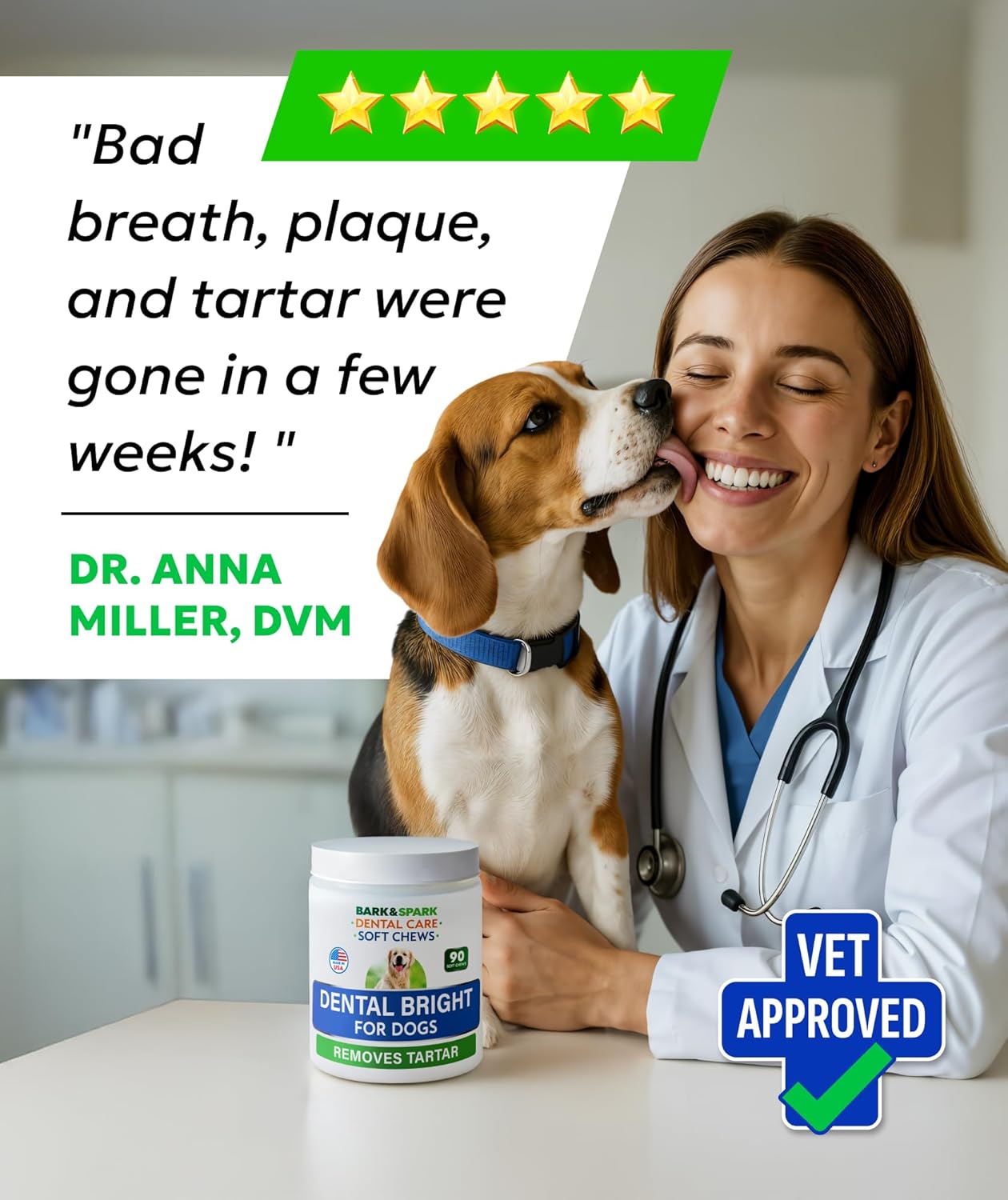 <br> Package Dimensions : 4.88 x 2.87 x 2.8 inches; 9.59 ounces <br> Item model number : BS100KGD090SC <br> Date First Available : April 15, 2025 <br> Manufacturer : Bark&Spark <br> ASIN : B0F4XPD5TR <br> Best Sellers Rank: #4,286 in Pet Supplies (See Top 100 in Pet Supplies) #58 in Dog Dental Care <br> Customer Reviews: 4.5 4.5 out of 5 stars (38) var dpAcrHasRegisteredArcLinkClickAction; P.when('A', 'ready').execute(function(A) { if (dpAcrHasRegisteredArcLinkClickAction !== true) { dpAcrHasRegisteredArcLinkClickAction = true; A.declarative( 'acrLink-click-metrics', 'click', { "allowLinkDefault": true }, function (event) { if (window.ue) { ue.count("acrLinkClickCount", (ue.count("acrLinkClickCount") || 0) + 1); } } ); } }); P.when('A', 'cf').execute(function(A) { A.declarative('acrStarsLink-click-metrics', 'click', { "allowLinkDefault" : true }, function(event){ if(window.ue) { ue.count("acrStarsLinkWithPopoverClickCount", (ue.count("acrStarsLinkWithPopoverClickCount") || 0) + 1); } }); }); <br>Smart Dental Solution: Support your dog’s teeth with dental chews for dogs made for oral care. Our formula helps maintain canine dental health naturally. Tastier than powders, easier than brushing!<br>We're Here to Help: If our chews for dogs teeth aren’t the remedy you hoped for, let us know—we’re always open to feedback and are committed to making your experience right.<br>Brush-Free Clean: No brushing needed! Our pet teeth cleaning chews help reduce tartar and freshen breath. A simple daily routine to support oral health and help protect against dental disease.<br>More Than Just Teeth: Presenting dog tooth chews plaque remover and cleaner, a product that delivers health benefits for teeth, breath & gut. A treatment to clean teeth and support a healthy, balanced microbiome.<br>One Chew Fits All: No matter the breed, our dog teeth cleaning chews provide overall health support, bad breath treatment and work as a gentle daily shield against plaque, tartar, and bad breath.<br>Pure by Design: Our perio prolab support chews for dogs deliver clean, natural care using only trusted ingredients—each supplement is crafted to support comprehensive oral health.<br>Made Here, Trusted Everywhere: Our dog breath chews are proudly made in the USA using effective ingredients to help reduce bad odor and support natural whitening for everyday oral health.<br>Healthy Habits Start Here: Incorporate dog dental chews for teeth cleaning into your dog’s food routine—daily use is the key to visible results in breath, plaque control, and gum health.