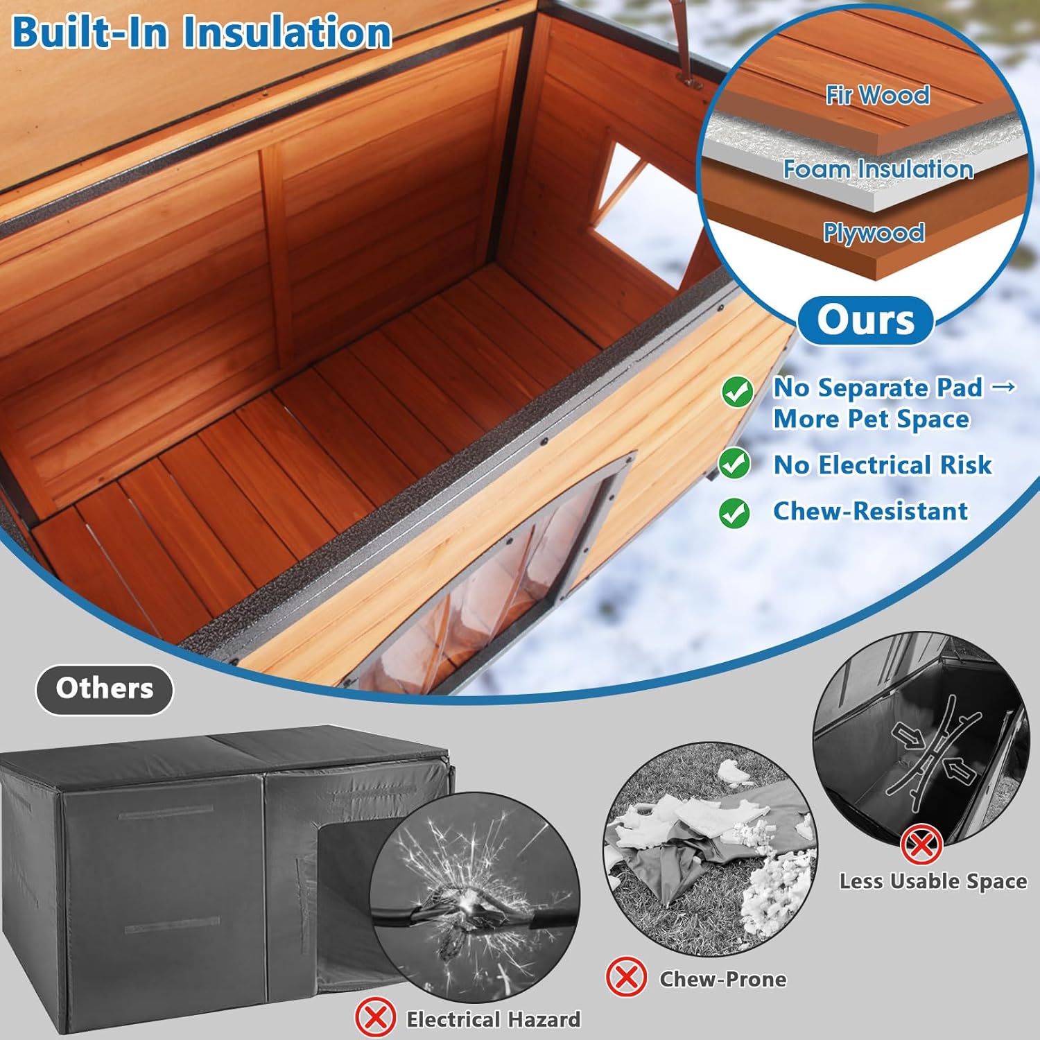 <br> Product Dimensions : 43.3 x 26.4 x 29.6 inches; 65 Pounds <br> Item model number : PD-1009 <br> Date First Available : October 9, 2023 <br> Manufacturer : luyitton <br> ASIN : B0CKRWJ39X <br> Best Sellers Rank: #48,774 in Pet Supplies (See Top 100 in Pet Supplies) #72 in Dog Houses <br> Customer Reviews: 4.1 4.1 out of 5 stars (131) var dpAcrHasRegisteredArcLinkClickAction; P.when('A', 'ready').execute(function(A) { if (dpAcrHasRegisteredArcLinkClickAction !== true) { dpAcrHasRegisteredArcLinkClickAction = true; A.declarative( 'acrLink-click-metrics', 'click', { "allowLinkDefault": true }, function (event) { if (window.ue) { ue.count("acrLinkClickCount", (ue.count("acrLinkClickCount") || 0) + 1); } } ); } }); P.when('A', 'cf').execute(function(A) { A.declarative('acrStarsLink-click-metrics', 'click', { "allowLinkDefault" : true }, function(event){ if(window.ue) { ue.count("acrStarsLinkWithPopoverClickCount", (ue.count("acrStarsLinkWithPopoverClickCount") || 0) + 1); } }); }); <br>6 Sides Insulation: Has your dog shivered in the winter? This dog house features thick foam insulation in each panel and an elevated floor to help regulate your dog's body temperature. 6 Sides All-round Foam Insulation lock the comfortable temperature: Optimal cold and heat protection for dog through insulation on all walls, roof and floor<br>Withstand Bad Weather: The outdoor dog house with 0.47 inch thick of fir wood, 0.6 inch thick of styrofoam inside, and 0.12 inch thick of plywood. No separate liners – the foam is permanently sealed within the walls to block heat transfer. The waterproof base is elevated off ground. The roof is slanted so rainfall will not sit on top. It will survive in heavy rain/snow to keep the dog warm and dry inside<br>Chew Proof Iron Frame: If your dog often breaks down the house, choose our dog house! It uses strong iron frames on each side to reduce the damage caused by dogs<br>High Bearing Capacity: The sturdy wooden panel can bear a weight of 220 pounds and will not collapse even if an adult male jumps inside.<br>Easy Cleaning: Openable roof and removable floor makes cleaning more efficient. clean environment is good for your pet’s health.<br>Easy assembly: With all necessary parts included, the dog house can be easily assembled with pre-drilled holes. Just 30 minutes, assembly is complete