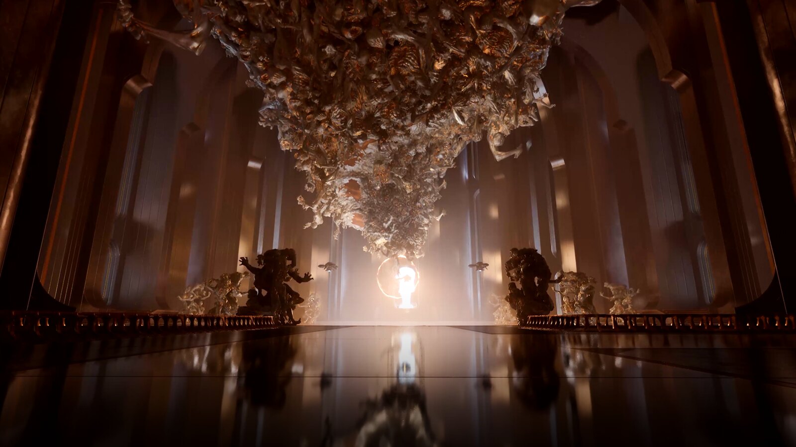 We also tease a mysterious future London alley and a hotel corridor that you’ll experience as Arjun. Saros is more than just a dark sci-fi action game – we can’t wait for you all to experience these story focused liminal spaces during Arjun’s journey on Carcosa. There’s also more twists and turns, but it’s best if they are experienced when playing.