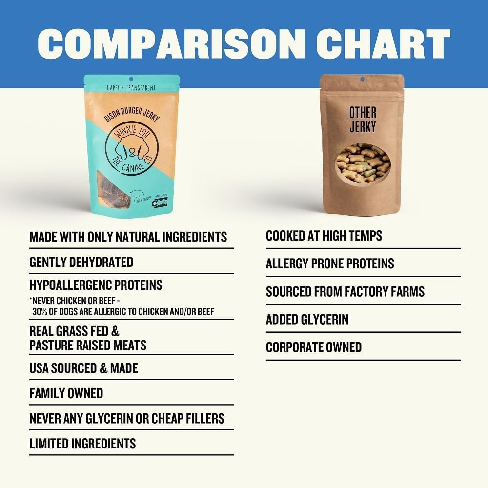 <br> Product Dimensions : 8 x 8.75 x 0.75 inches; 3.5 ounces <br> Item model number : 860008441713 <br> Date First Available : April 3, 2023 <br> Manufacturer : Winnie Lou The Canine Co. <br> ASIN : B0C1CV9PHG <br> Best Sellers Rank: #23,935 in Pet Supplies (See Top 100 in Pet Supplies) #242 in Dog Jerky Treats <br> Customer Reviews: 4.3 4.3 out of 5 stars (37) var dpAcrHasRegisteredArcLinkClickAction; P.when('A', 'ready').execute(function(A) { if (dpAcrHasRegisteredArcLinkClickAction !== true) { dpAcrHasRegisteredArcLinkClickAction = true; A.declarative( 'acrLink-click-metrics', 'click', { "allowLinkDefault": true }, function (event) { if (window.ue) { ue.count("acrLinkClickCount", (ue.count("acrLinkClickCount") || 0) + 1); } } ); } }); P.when('A', 'cf').execute(function(A) { A.declarative('acrStarsLink-click-metrics', 'click', { "allowLinkDefault" : true }, function(event){ if(window.ue) { ue.count("acrStarsLinkWithPopoverClickCount", (ue.count("acrStarsLinkWithPopoverClickCount") || 0) + 1); } }); }); <br>FARM-FRESH, LIMITED INGREDIENT DOG TREATS: Made with just a few REAL, WHOLE FOOD ingredients sourced from Colorado farms to keep your pup’s diet clean and simple