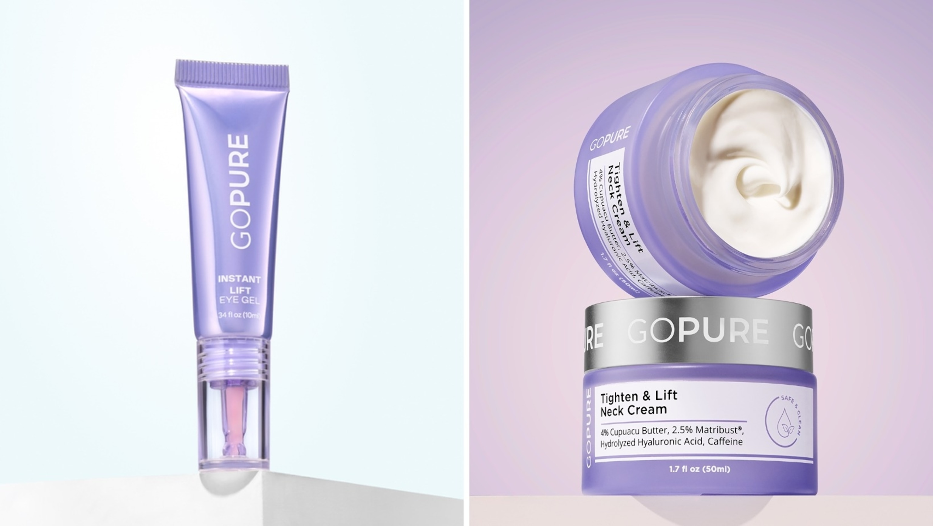 Get real results backed by clinically tested, active ingredients at proven percentages. GOPURE is a husband and wife-owned company out of Southern California offering clean, cruelty free, effective formulas at accessible prices. Instant Lift Eye Gel is powered by Collagen Targeting Biotech to deliver visible results in just minutes. This dermatologist-developed formula reduces the look of crow’s feet, puffiness, eye bags, dark circles, fine lines and wrinkles in minutes for a firmer appearance. With 2 million jars sold, Tighten & Lift Neck Cream is designed to do what face cream can’t, smoothing the look of lines and sagging skin on the neck, powered by a proprietary firming complex that features smoothing caffeine and tightening tamarind seed. Creams, serums and scrubs are also available. Limit two per product. Shipping is $4.99 or free over $49.