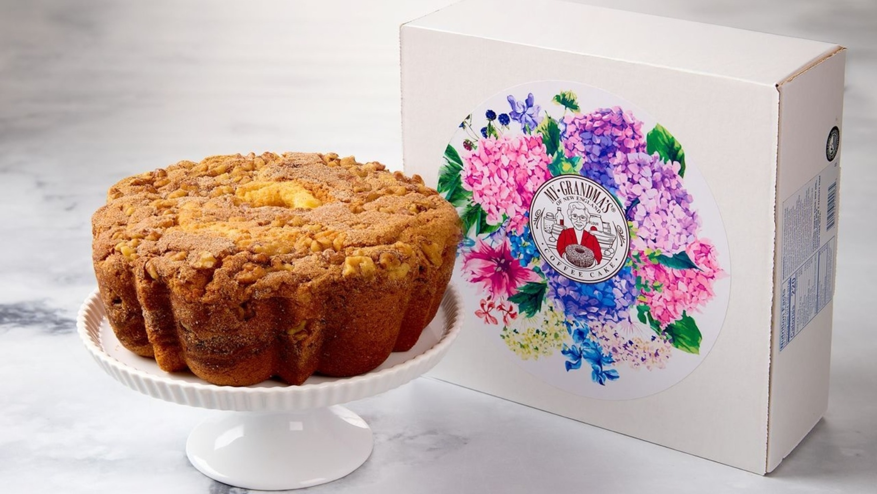 Send someone you love a delicious treat. Beloved My Grandma’s of New England cakes are unbelievably moist because they’re baked using only the finest and freshest ingredients available. After adding farm fresh eggs, pure bourbon vanilla, and cultured sour cream, My Grandma’s of New England creates its bestselling and original Cinnamon Walnut Coffee Cake by handpouring and double-layering each cake with cinnamon streusel and California walnuts. Allergies or not nuts for nuts? Opt for the Cinnamon Coffee Cake, the same classic taste without the Walnuts. New England Blueberry Coffee Cake is made with fresh New England Blueberries and a touch of pure New England Maple syrup. Store cakes at room temperature or in the refrigerator for 12 days, or you can freeze the cake for just the right moment to enjoy. Limit one per order. Shipping is $7.99.