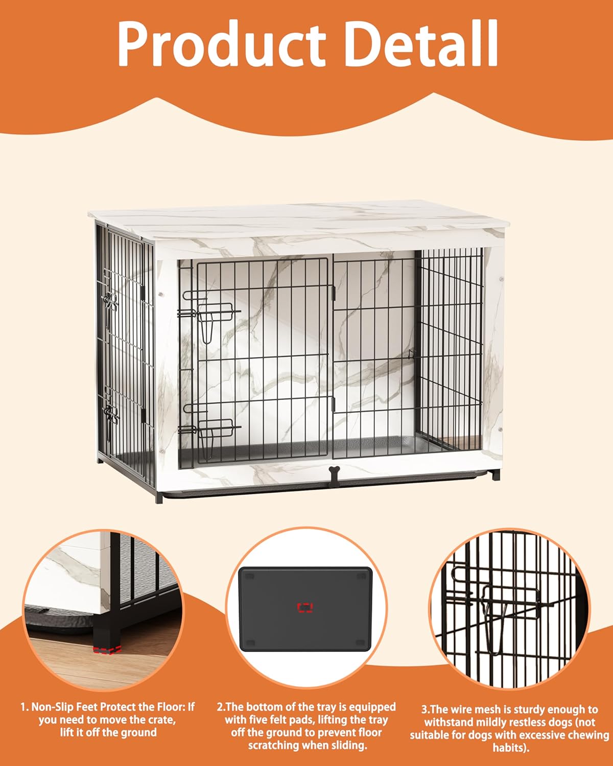 【Easy-to-clean Tray】The interior of the dog crate needs regular disinfection and cleaning of fur and dirt. The durable, odor-resistant tray can be easily pulled out and cleaned in case of accidents, something a wooden board can’t do. The bone-shaped baffle secures the tray in the crate and prevents it from sliding out. (The tray comes with 5 felt pads underneath to protect your floor from scratches)