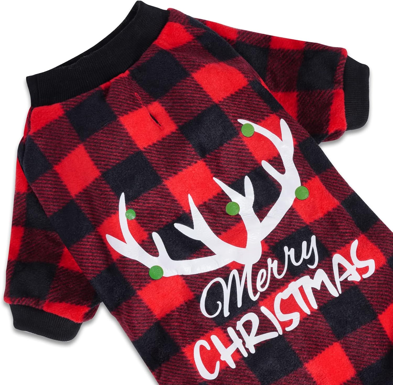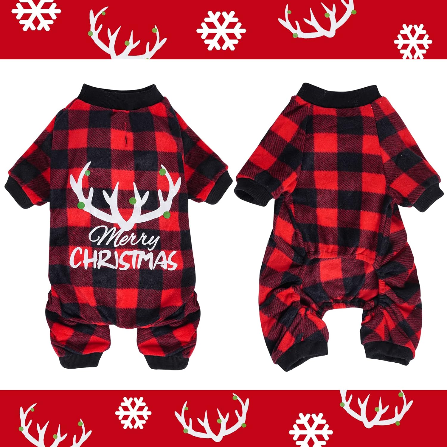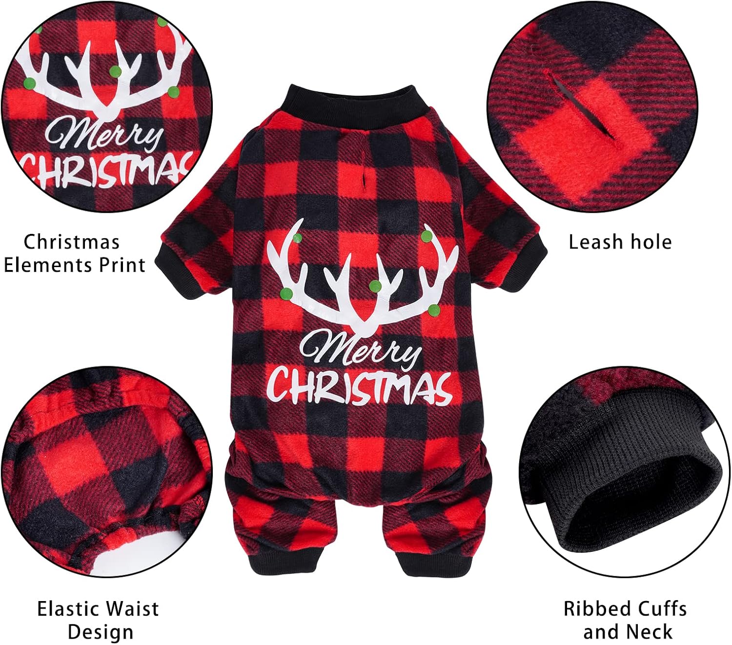 Soft and Comfy Material: this dog christmas pajamas is made of polyester and fleece, warm and lightweight, comfortable, breathable and stretchy fabric makes these fleece pajamas great for all-weather and bring a good wearing experience for your fur friends.