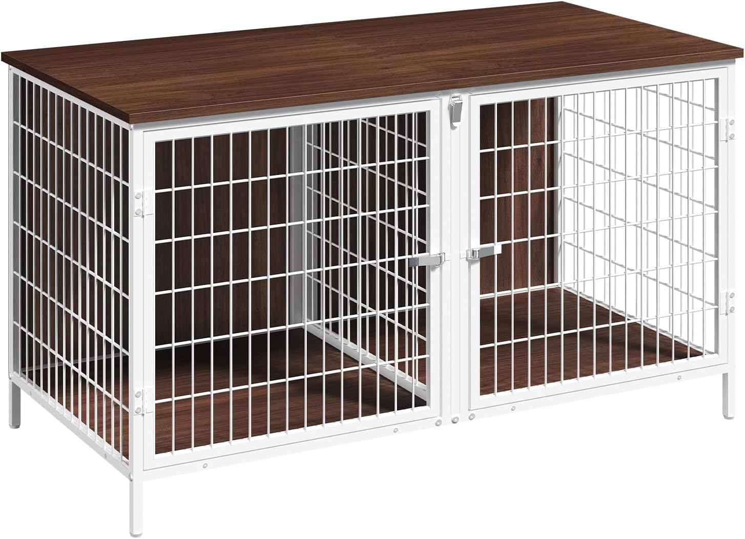 <br> Product Dimensions : 43.3 x 21.7 x 26.4 inches; 48.65 Pounds <br> Item model number : DCBA1201 Dog Crate Furniture <br> Date First Available : June 16, 2025 <br> Manufacturer : MAHANCRIS <br> ASIN : B0DTYPGH1N <br> Best Sellers Rank: #22,500 in Pet Supplies (See Top 100 in Pet Supplies) #23 in Furniture-Style Dog Crates <br> Customer Reviews: 4.3 4.3 out of 5 stars 286 ratings var dpAcrHasRegisteredArcLinkClickAction; P.when('A', 'ready').execute(function(A) { if (dpAcrHasRegisteredArcLinkClickAction !== true) { dpAcrHasRegisteredArcLinkClickAction = true; A.declarative( 'acrLink-click-metrics', 'click', { "allowLinkDefault": true }, function (event) { if (window.ue) { ue.count("acrLinkClickCount", (ue.count("acrLinkClickCount") || 0) + 1); } } ); } }); P.when('A', 'cf').execute(function(A) { A.declarative('acrStarsLink-click-metrics', 'click', { "allowLinkDefault" : true }, function(event){ if(window.ue) { ue.count("acrStarsLinkWithPopoverClickCount", (ue.count("acrStarsLinkWithPopoverClickCount") || 0) + 1); } }); }); <br>Removable Divider: This dog crate furniture is an ideal choice for households with 2 dogs. You can install the detachable divider to comfortably accommodate 2 small dogs, or remove it to create a larger space for your large dog. One step solves your hassle<br>Multifunctional Dog Cage: This vintage double dog crate with divider easily blends with any decors. The wide top is ideal for ornaments and various items, saving space. Besides as a cozy home for your dog, it can serve as a TV stand, storage cabinet, display stand, end table or side table<br>Firm Construction: This indoor dog kennel is made of high-class and durable panels and metal. The top panel can undertake up to 160 lb and the internal shelf 80 lb, providing a durable, stable, and secure resting place for your furry friend<br>Right Size: The size of the dog crate is 43.3"L x 21.7"W x 26.4"H, before purchasing, please measure the height and length of your pet to ensure enough comfort. This dog crate furniture has a spacious interior for your furry friend, suitable for 2 small dogs under 40 lb each, or a large dog under 80 lb<br>Easy Installation: This wooden dog crate furniture for 2 dog has a simple and clear structure, and comes with detailed installation instructions. It can be quickly assembled without the need for professional tools. Set up a comfortable living space for your pet