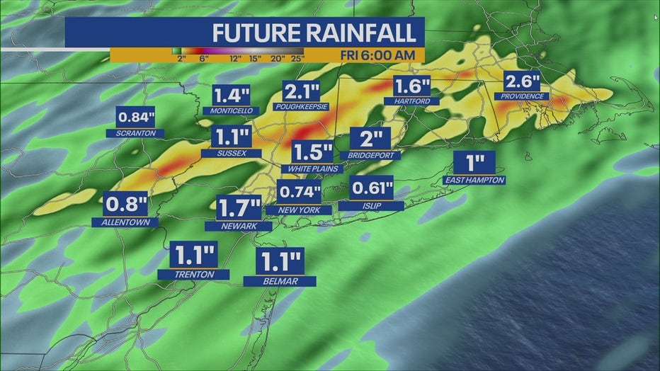 Specifically during Thursday’s morning commute, where scattered showers, storms, heavy downpours and even some localized flooding are all possible. FOX 5 NY’s Mike Woods says: “Your rain chances go up big time tonight into tomorrow.”