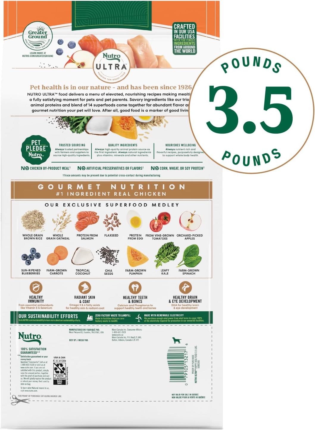 Ultra Difference: Nutro Ultra High Protein Dry Dog Puppy Food provides high-quality ingredients like our trio of animal proteins and exclusive blend of 14 superfoods to deliver abundant flavor and gourmet nutrition your pet will love