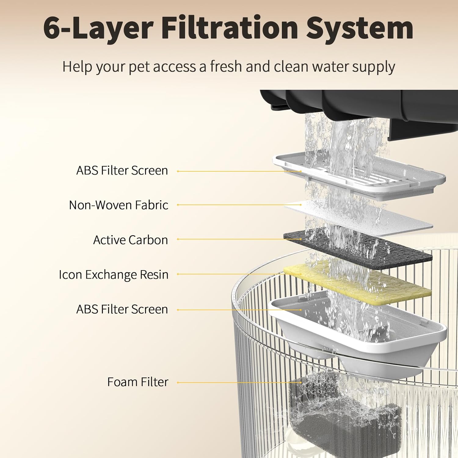 <br> Product Dimensions : 11.4 x 11.4 x 4.7 inches; 2.2 Pounds <br> Item model number : PL01 <br> Date First Available : July 3, 2023 <br> Manufacturer : Vekonn <br> ASIN : B0CB1S9RZV <br> Best Sellers Rank: #18,431 in Pet Supplies (See Top 100 in Pet Supplies) #69 in Dog Fountains <br> Customer Reviews: 4.2 4.2 out of 5 stars 361 ratings var dpAcrHasRegisteredArcLinkClickAction; P.when('A', 'ready').execute(function(A) { if (dpAcrHasRegisteredArcLinkClickAction !== true) { dpAcrHasRegisteredArcLinkClickAction = true; A.declarative( 'acrLink-click-metrics', 'click', { "allowLinkDefault": true }, function (event) { if (window.ue) { ue.count("acrLinkClickCount", (ue.count("acrLinkClickCount") || 0) + 1); } } ); } }); P.when('A', 'cf').execute(function(A) { A.declarative('acrStarsLink-click-metrics', 'click', { "allowLinkDefault" : true }, function(event){ if(window.ue) { ue.count("acrStarsLinkWithPopoverClickCount", (ue.count("acrStarsLinkWithPopoverClickCount") || 0) + 1); } }); }); <br>[169oz Large Capacity]: Vekonn dog water fountain boasts a 169-ounce water capacity, which eliminates the need for frequent refilling; With its expansive drinking area, this fountain is suitable for dogs and multi-pet households<br>[Transparent Body Design]: Featuring a transparent body design, this dog water bowl dispenser allows you to effortlessly keep an eye on the water level and quality; This ensures that your pet never goes without water<br>[Easy Setup and Maintenance]: Enjoy unmatched convenience with this automatic water dispenser's swift assembly and disassembly, taking just a few minutes to complete; Its circular design ensures thorough cleaning without any hard-to-reach spots<br>[Ultra-Quiet Pump (<30dB)]: With its ultra-quiet operation below 30dB, the pump is perfect for quiet environments and nighttime use; Made of BPA-free material and sealed with resin for easy cleaning and corrosion resistance, it ensures durability; The pump operates efficiently with a low power consumption of 1.5W, maintaining optimal performance<br>[Multi-Stage Filtration System]: This dog fountain water bowl includes 3 replacement filters, eliminating the need for immediate additional purchases; The carbon filter effectively removes dirt and food particles, while the pre-foam filter prevents pump blockages