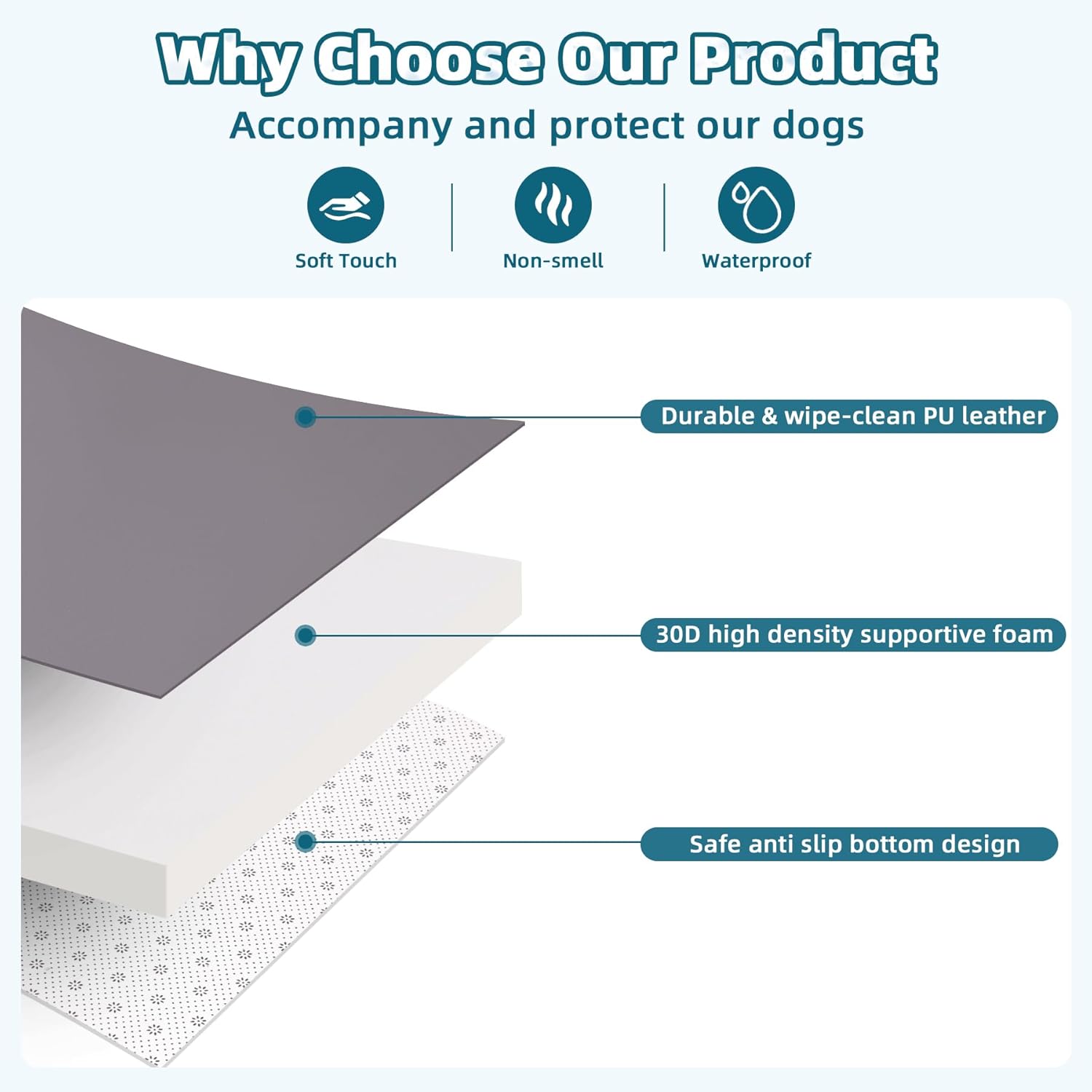 <br> Product Dimensions : 1.2 x 27 x 41 inches; 3.55 Pounds <br> Item model number : GD062 <br> Date First Available : March 27, 2025 <br> Manufacturer : WAYIMPRESS <br> ASIN : B0F2MKVMRF <br> Best Sellers Rank: #3,514 in Pet Supplies (See Top 100 in Pet Supplies) #46 in Dog Beds <br> Customer Reviews: 4.3 4.3 out of 5 stars 742 ratings var dpAcrHasRegisteredArcLinkClickAction; P.when('A', 'ready').execute(function(A) { if (dpAcrHasRegisteredArcLinkClickAction !== true) { dpAcrHasRegisteredArcLinkClickAction = true; A.declarative( 'acrLink-click-metrics', 'click', { "allowLinkDefault": true }, function (event) { if (window.ue) { ue.count("acrLinkClickCount", (ue.count("acrLinkClickCount") || 0) + 1); } } ); } }); P.when('A', 'cf').execute(function(A) { A.declarative('acrStarsLink-click-metrics', 'click', { "allowLinkDefault" : true }, function(event){ if(window.ue) { ue.count("acrStarsLinkWithPopoverClickCount", (ue.count("acrStarsLinkWithPopoverClickCount") || 0) + 1); } }); }); <br>Strong supportive foam inside: 3cm thickness 30D high density foam, more supportive and not bulky, can be carried anywhere.<br>Waterproof & stain-resistant crate pad: The top fabric of the dog crate mat takes vegan leather, which is wear-resistant and waterproof, effectively blocking liquids and protecting the internal foam, which greatly increases the overall service life of the dog mat. Wash more thoroughly, the leather top fabric won't harbor dirt and hair.<br>Scrubbable for easy maintenance: when your dog has an accident, you can directly scrub it with a wet paper towel or rinse it with water and leave it in a ventilated area to dry (note: do not leave it in the sun as this will reduce the life of the dog mat). This dog mat can provide a clean and comfortable bed for your dog at all times.<br>Non-slip bottom: The non-slip bottom can make the dog mat firmly fixed in place without sliding, ensuring the safety of your pet.<br>Versatile use: This dog mat fits standard size dog crates, can be used inside the crate, kennel. It can also be taken outdoors to provide a clean place for your dog to avoid getting dusty at any time when the whole family is out enjoying leisure time together.
