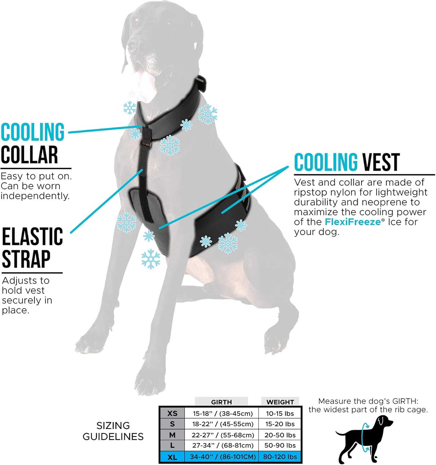 Help Your Dog Be Cool & Safe <img alt="Sizing Guidelines" src="https://images-na.ssl-images-amazon.com/images/G/01/x-locale/common/grey-pixel.gif" class="a-lazy-loaded" data-src="https://m.media-amazon.com/images/S/aplus-media-library-service-media/37971f8d-1b51-4478-ab7b-0a48cb631b57.__CR0,0,2666,2000_PT0_SX300_V1___.jpg"><img alt="Sizing Guidelines" src="https://m.media-amazon.com/images/S/aplus-media-library-service-media/37971f8d-1b51-4478-ab7b-0a48cb631b57.__CR0,0,2666,2000_PT0_SX300_V1___.jpg"> Available for all Dogs <p class="aplus-p3"> From pugs to Great Danes, the CoolerDog cooling vest and collar are available in all sizes. </p> <img alt="Dog in CoolerDog Vest and Collar" src="https://images-na.ssl-images-amazon.com/images/G/01/x-locale/common/grey-pixel.gif" class="a-lazy-loaded" data-src="https://m.media-amazon.com/images/S/aplus-media-library-service-media/cf296fa0-e981-4d35-b3d1-3dc03a54dff9.__CR0,0,3972,2979_PT0_SX300_V1___.jpg"><img alt="Dog in CoolerDog Vest and Collar" src="https://m.media-amazon.com/images/S/aplus-media-library-service-media/cf296fa0-e981-4d35-b3d1-3dc03a54dff9.__CR0,0,3972,2979_PT0_SX300_V1___.jpg"> Keep Your Dog Safe in the Heat <p class="aplus-p3"> Designed with your dog in mind, the CoolerDog vest and collar pulls heat from the neck and belly areas to keep your dog cool and safe in the heat. </p> <img alt="CoolerDog Vest and Collar showing the Ice" src="https://images-na.ssl-images-amazon.com/images/G/01/x-locale/common/grey-pixel.gif" class="a-lazy-loaded" data-src="https://m.media-amazon.com/images/S/aplus-media-library-service-media/ec1c093e-b32a-45db-bb63-d6935fbfda20.__CR0,0,2000,1500_PT0_SX300_V1___.jpg"><img alt="CoolerDog Vest and Collar showing the Ice" src="https://m.media-amazon.com/images/S/aplus-media-library-service-media/ec1c093e-b32a-45db-bb63-d6935fbfda20.__CR0,0,2000,1500_PT0_SX300_V1___.jpg"> Long-Lasting Cooling <p class="aplus-p3"> The use of FlexiFreeze Ice makes a very effective, long-lasting, pure water, cooling solution for your dog that has 10x the cooling power of gel pads. </p> <img alt="Great Dane in CoolerDog Vest and Collar" src="https://images-na.ssl-images-amazon.com/images/G/01/x-locale/common/grey-pixel.gif" class="a-lazy-loaded" data-src="https://m.media-amazon.com/images/S/aplus-media-library-service-media/cf4ad2aa-8ebe-4761-a4b0-51c1ac215af0.__CR0,0,2666,2000_PT0_SX300_V1___.jpg"><img alt="Great Dane in CoolerDog Vest and Collar" src="https://m.media-amazon.com/images/S/aplus-media-library-service-media/cf4ad2aa-8ebe-4761-a4b0-51c1ac215af0.__CR0,0,2666,2000_PT0_SX300_V1___.jpg"> Comfort and Safety <p class="aplus-p3"> FlexiFreeze Ice Removes Excess Heat to help keep your dog comfortable and safe in the heat. </p>
