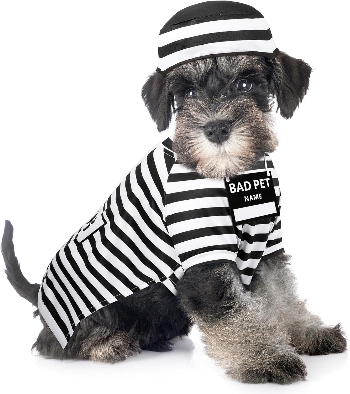 Multiple Purposes: these funny dog costume shirts are ideal for wide occasions, such as cosplay parties, photo shoots, dress up Halloween or just for daily wear; Let your dog join the fun in the Halloween costume from wearing this prisoner costume set