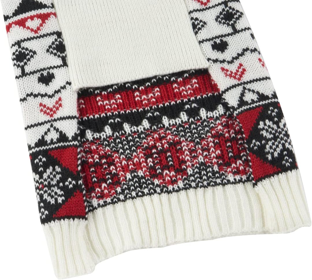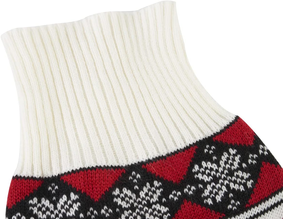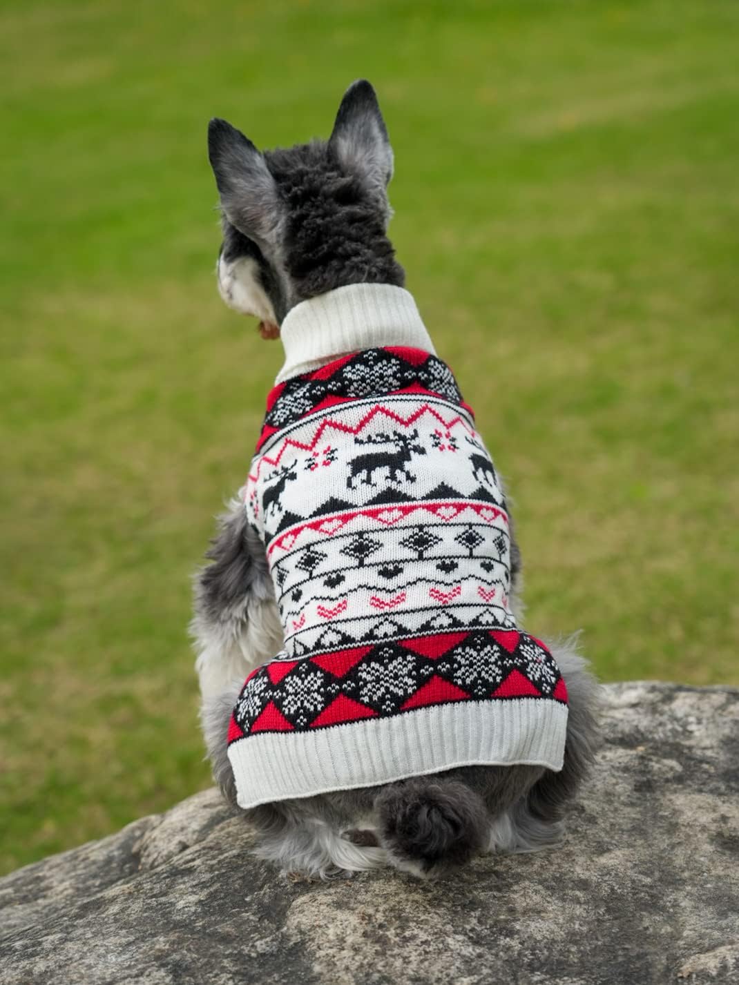 There are 5 sizes available: XS SIZE: back length 9″, neck girth 8-10″, chest girth 12- 14″; SMALL SIZE: back length 12″, neck girth 10-12″, chest girth 14- 16″; MEDIUM SIZE: back length 14″, neck girth 12-14″, chest girth 16- 18″; LARGE SIZE: back length 16″, neck girth 14-16″, chest girth 18- 20″; XLARGE SIZE:back length 20″, neck girth 20″, chest girth 22- 26″ . PERFECT FOR Christmas or New Year party special occasions! This sweater with classic Red black white color,looks so handsome,So cute.DESIGN:Turtleneck knitted, easy on and off in pullover design.Super cute clothes Party theme dog sweater. SUPER SOFT MATERIAL: Made of 100% acrylic, the softest and comfiest pet sweater,stretchy & lightweight. This is absolutely adorable costume for your pets, such as:Yorkie, Toy Poodle, Chihuahua, Maltese and other medium large pets.