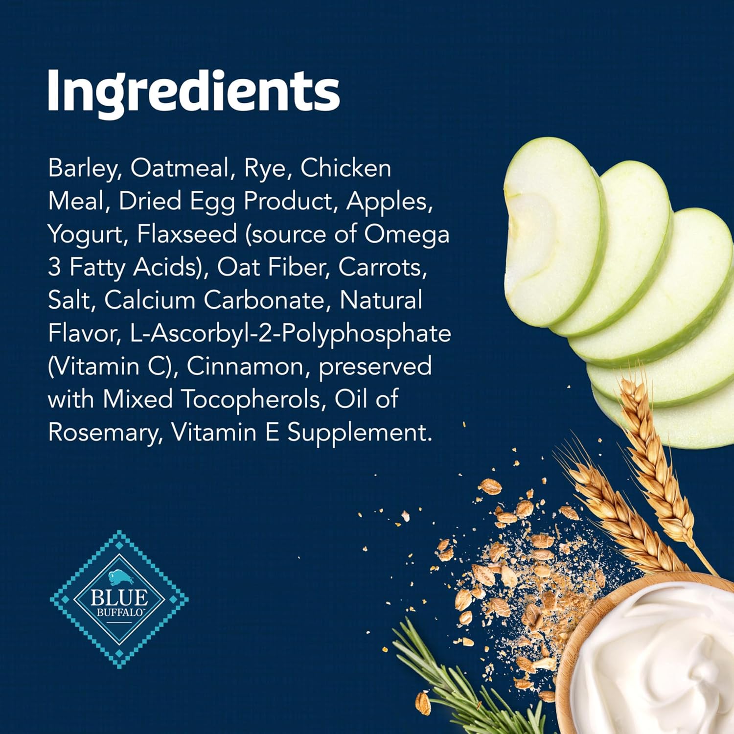 INCLUDED IN PACKAGE: Contains One (1) 16-oz bag of BLUE Health Bars Mini Crunchy Dog Biscuits, Oven-Baked with Natural Ingredients, Apples & Yogurt