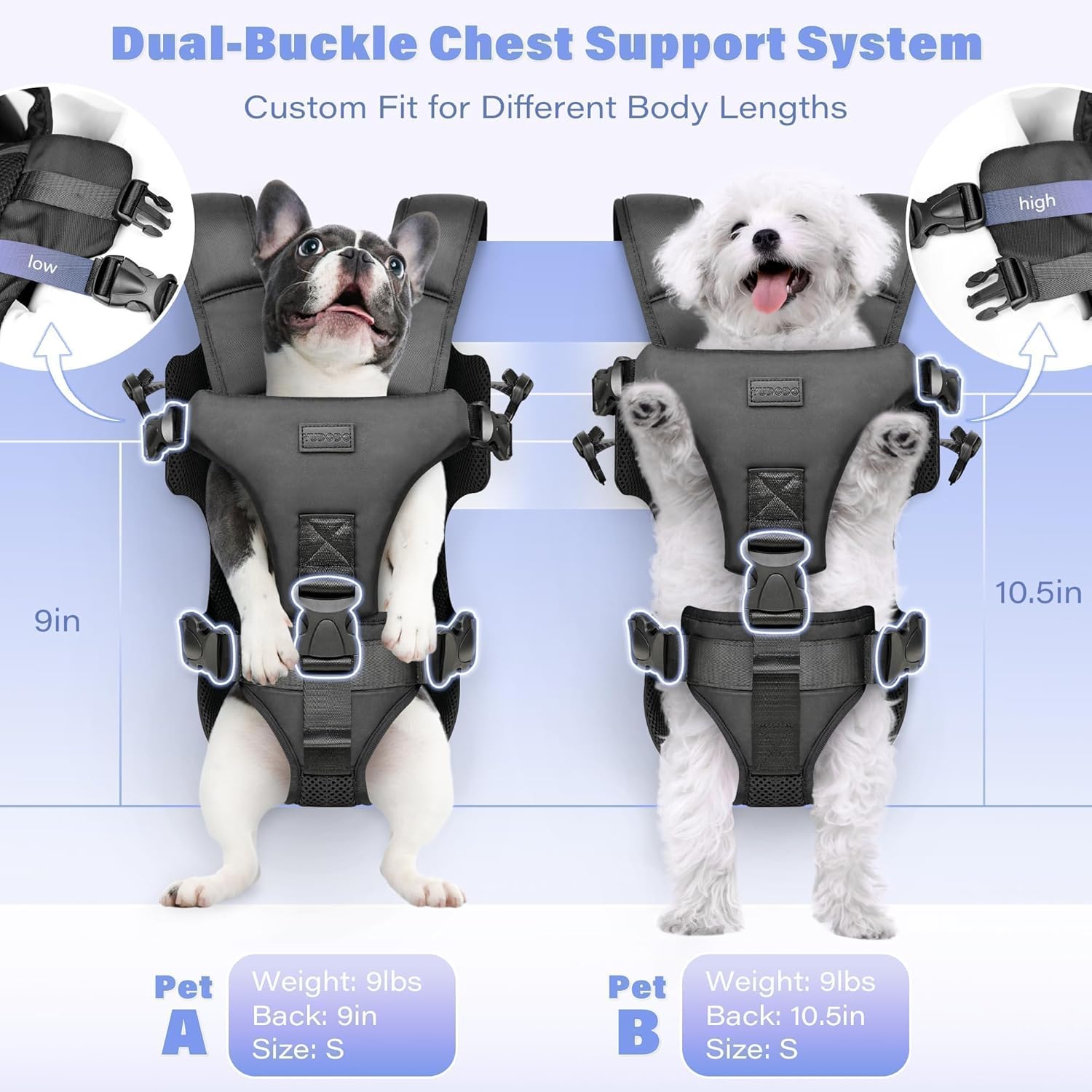 <br> Product Dimensions : 14 x 7 x 4 inches; 14.07 ounces <br> Item model number : 88010 <br> Date First Available : December 13, 2023 <br> Manufacturer : YUDODO <br> ASIN : B0CQ4VRKP6 <br> Best Sellers Rank: #37,583 in Pet Supplies (See Top 100 in Pet Supplies) #79 in Dog Carrier Backpacks <br> Customer Reviews: 4.0 4.0 out of 5 stars 303 ratings var dpAcrHasRegisteredArcLinkClickAction; P.when('A', 'ready').execute(function(A) { if (dpAcrHasRegisteredArcLinkClickAction !== true) { dpAcrHasRegisteredArcLinkClickAction = true; A.declarative( 'acrLink-click-metrics', 'click', { "allowLinkDefault": true }, function (event) { if (window.ue) { ue.count("acrLinkClickCount", (ue.count("acrLinkClickCount") || 0) + 1); } } ); } }); P.when('A', 'cf').execute(function(A) { A.declarative('acrStarsLink-click-metrics', 'click', { "allowLinkDefault" : true }, function(event){ if(window.ue) { ue.count("acrStarsLinkWithPopoverClickCount", (ue.count("acrStarsLinkWithPopoverClickCount") || 0) + 1); } }); }); <br>Ergonomic Comfort for You and Your Pet : Designed with wide, padded shoulder straps and a triangular chest support system, this pet backpack reduces strain on your shoulders and evenly distributes weight for a more comfortable carry during long walks or hikes.<br>Secure and Safe Carrying Experience : Features an interior safety strap with a buckle to keep your pet from jumping out, along with secure zippers and adjustable leg and tail holes for a snug and stable fit—perfect for active pets or bumpy rides.<br>Breathable Mesh for All-Season Use : Made with high-quality, breathable mesh fabric that provides excellent airflow to keep your pet cool and comfortable—even during summer outings or extended travel.<br>Fully Adjustable Fit for Pets and Owners : Multiple adjustable points on the shoulder straps, chest belt, and bottom opening ensure a custom fit for small dogs and cats, while accommodating different body sizes of pet parents.<br>Ideal for Walking, Hiking, Biking, or Travel : Whether you're heading out for a quick walk, a mountain hike, or a weekend road trip, this front pet carrier is lightweight, portable, and perfect for keeping your furry friend close and safe.