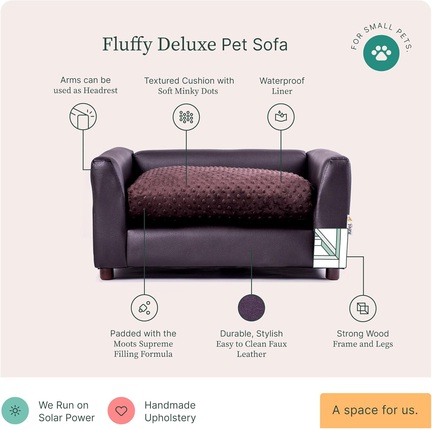 Premium Faux Leather, Built to Last: Moots Leatherette Dog Couch is crafted with premium faux leather reinforced with mesh fabric for added durability; Our dog sofa bed it’s perfect for playful pups, and cleaning up is a breeze; This dog sofa includes a removable, machine washable cushion cover made of soft Minky Dots fabric
