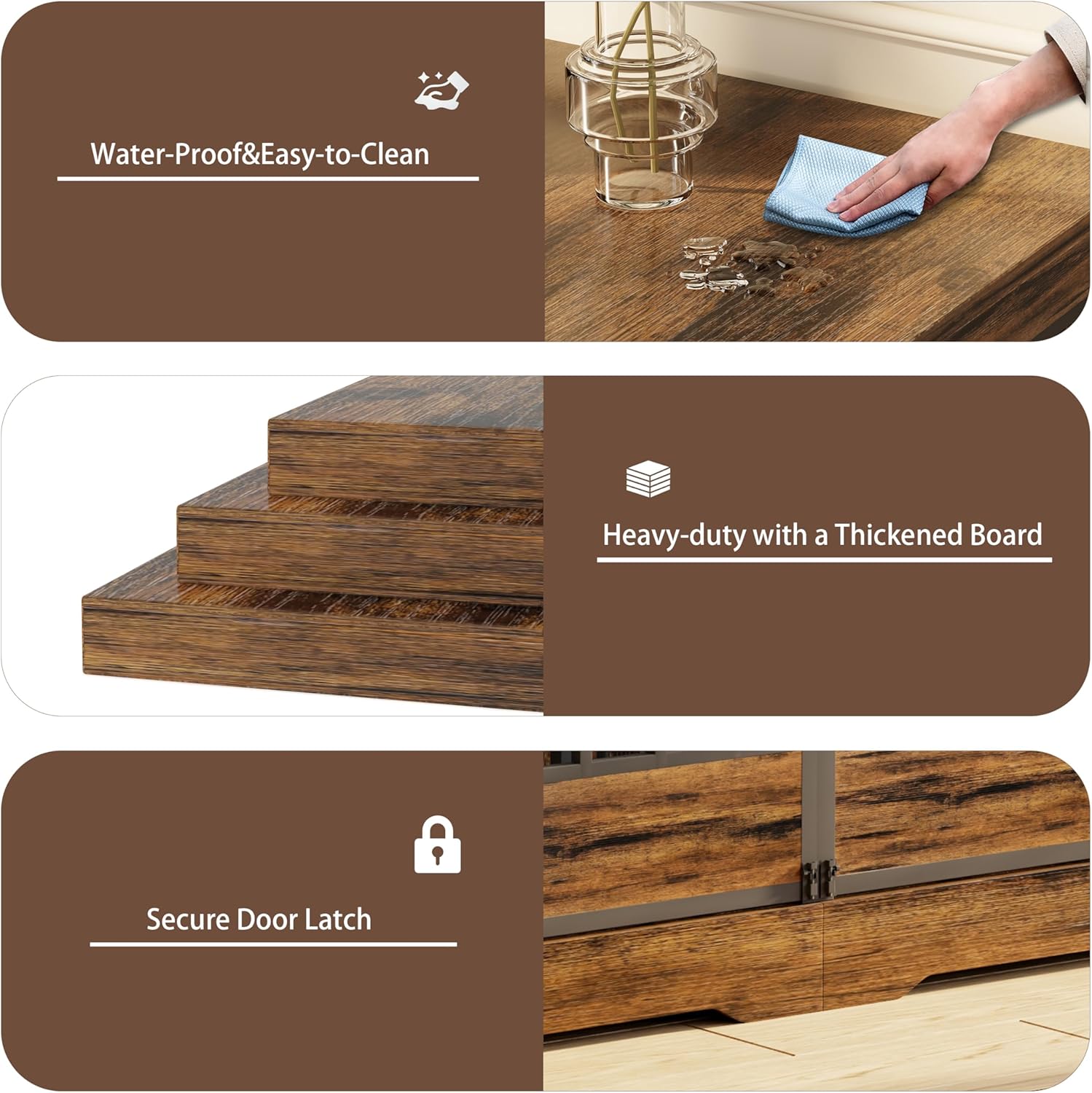 <br> Product Dimensions : 78 x 23.8 x 31.7 inches <br> Date First Available : June 18, 2025 <br> Manufacturer : COZPAW <br> ASIN : B0FDKMVM9S <br> Best Sellers Rank: #39,055 in Pet Supplies (See Top 100 in Pet Supplies) #73 in Furniture-Style Dog Crates <br> Customer Reviews: 4.6 4.6 out of 5 stars 40 ratings var dpAcrHasRegisteredArcLinkClickAction; P.when('A', 'ready').execute(function(A) { if (dpAcrHasRegisteredArcLinkClickAction !== true) { dpAcrHasRegisteredArcLinkClickAction = true; A.declarative( 'acrLink-click-metrics', 'click', { "allowLinkDefault": true }, function (event) { if (window.ue) { ue.count("acrLinkClickCount", (ue.count("acrLinkClickCount") || 0) + 1); } } ); } }); P.when('A', 'cf').execute(function(A) { A.declarative('acrStarsLink-click-metrics', 'click', { "allowLinkDefault" : true }, function(event){ if(window.ue) { ue.count("acrStarsLinkWithPopoverClickCount", (ue.count("acrStarsLinkWithPopoverClickCount") || 0) + 1); } }); }); <br>【Individual Living Spaces】This thoughtfully designed double door dog crate offers generous space for your pets, ensuring their comfort. It serves as double dog crate furniture for two large dogs, making it ideal for families with multiple pets by offering them separate areas to rest and play. Each compartment measures 38.95” L x 21” W x 26.7” H, making it suitable for small, medium, and large breeds.The open bar design creates a spacious, breathable environment that reduces anxiety and keeps your pets relaxed.<br>【Versatile Furniture Dog Crate】This chic, furniture-inspired double dog kennel furniture combines elegance and practicality. More than a pet enclosure, it doubles as a functional piece of furniture. The wide top surface is ideal for decorations, books, or daily essentials, while the rustic wood-grain design and classic bar structure seamlessly complement living rooms, bedrooms, or farmhouse-style décor. Perfectly blending aesthetics and functionality, it lets your pets stay close while enhancing your home’s style.<br>【Reliable, Safe & Interactive】Double dog crate crafted with high-quality metal bars and sturdy wood panels, this dog crate ensures both durability and interaction. The reinforced wood frame and robust steel tubing can support up to 300 lbs, offering exceptional stability and chew resistance compared to typical crates. The bar spacing allows you to easily check on, feed, or comfort your dogs without opening the door, providing safety while keeping pets engaged and connected with family life.<br>【Sliding Door Design 】Smooth sliding doors open and close without blocking walkways or taking up extra room. Ideal for hallways, corners, or beside furniture, keeping your space open and easy to move around.<br>【Easy-to-Clean Design】The double dog kennel features 5-inch high legs that allow robot vacuums to clean underneath without the need to move the furniture. The open-bar structure also improves airflow, reduces odor buildup, and helps maintain a fresh, healthy space for your pets.<br>【Fast Setup & Premium Support】Double dog cage designed with user-friendliness in mind, this double dog crate includes clear and detailed assembly instructions for quick and easy setup. You’ll have your dog enjoying a secure and cozy space in no time. Additionally, our dedicated customer support team is ready to assist you with any questions or concerns