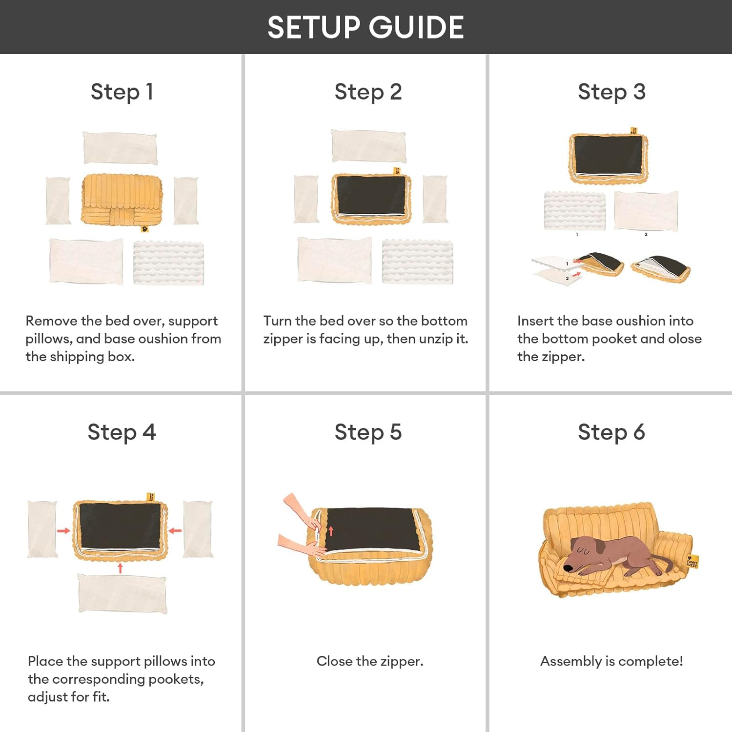 <br> Product Dimensions : 47.2 x 35.4 x 15.7 inches; 9 Pounds <br> Item model number : 5010232 <br> Date First Available : December 2, 2024 <br> Manufacturer : FUNNY FUZZY Pet <br> ASIN : B0DPF7YBFZ <br> Best Sellers Rank: #38,435 in Pet Supplies (See Top 100 in Pet Supplies) #522 in Dog Beds <br> Customer Reviews: 3.6 3.6 out of 5 stars 114 ratings var dpAcrHasRegisteredArcLinkClickAction; P.when('A', 'ready').execute(function(A) { if (dpAcrHasRegisteredArcLinkClickAction !== true) { dpAcrHasRegisteredArcLinkClickAction = true; A.declarative( 'acrLink-click-metrics', 'click', { "allowLinkDefault": true }, function (event) { if (window.ue) { ue.count("acrLinkClickCount", (ue.count("acrLinkClickCount") || 0) + 1); } } ); } }); P.when('A', 'cf').execute(function(A) { A.declarative('acrStarsLink-click-metrics', 'click', { "allowLinkDefault" : true }, function(event){ if(window.ue) { ue.count("acrStarsLinkWithPopoverClickCount", (ue.count("acrStarsLinkWithPopoverClickCount") || 0) + 1); } }); }); <br>Orthopedic Comfort for Healthy Joints: Crafted with premium high-density orthopedic foam, this dog bed evenly distributes your pet’s weight to relieve pressure on joints and hips. It supports proper spine alignment and provides the perfect balance of firmness and softness for dogs of all sizes — from small pups to large breeds<br>Designer Sofa Style, Made for Comfort: This luxury dog sofa bed combines elegant style with functional comfort. Its three-sided bolstered design and plush pillow provide head and neck support, while the elevated shape blends beautifully into your home décor - offering your dog a cozy, modern resting space<br>Premium Plush Materials for Deep Sleep: Crafted with fluffy faux fur and ultra-soft plush, this orthopedic dog bed offers a warm, cozy retreat year-round. The supportive foam base ensures stability, while the fluffy surface helps pets feel safe, relaxed, and ready for deep sleep<br>Supportive Shape with Non-Slip Safety: The thick foam core maintains its supportive shape even with daily use, giving lasting comfort and structure. The non-slip bottom keeps the dog couch bed securely in place on tile or hardwood floors, creating a safe and steady space for dogs to lounge or nap<br>Removable, Washable Cover for Easy Care: The zippered cover is removable and machine washable, allowing you to keep your pet’s bed fresh and hygienic with minimal effort. Ideal for busy pet parents who want a clean, stylish, and long-lasting pet bed that’s always ready for their next nap