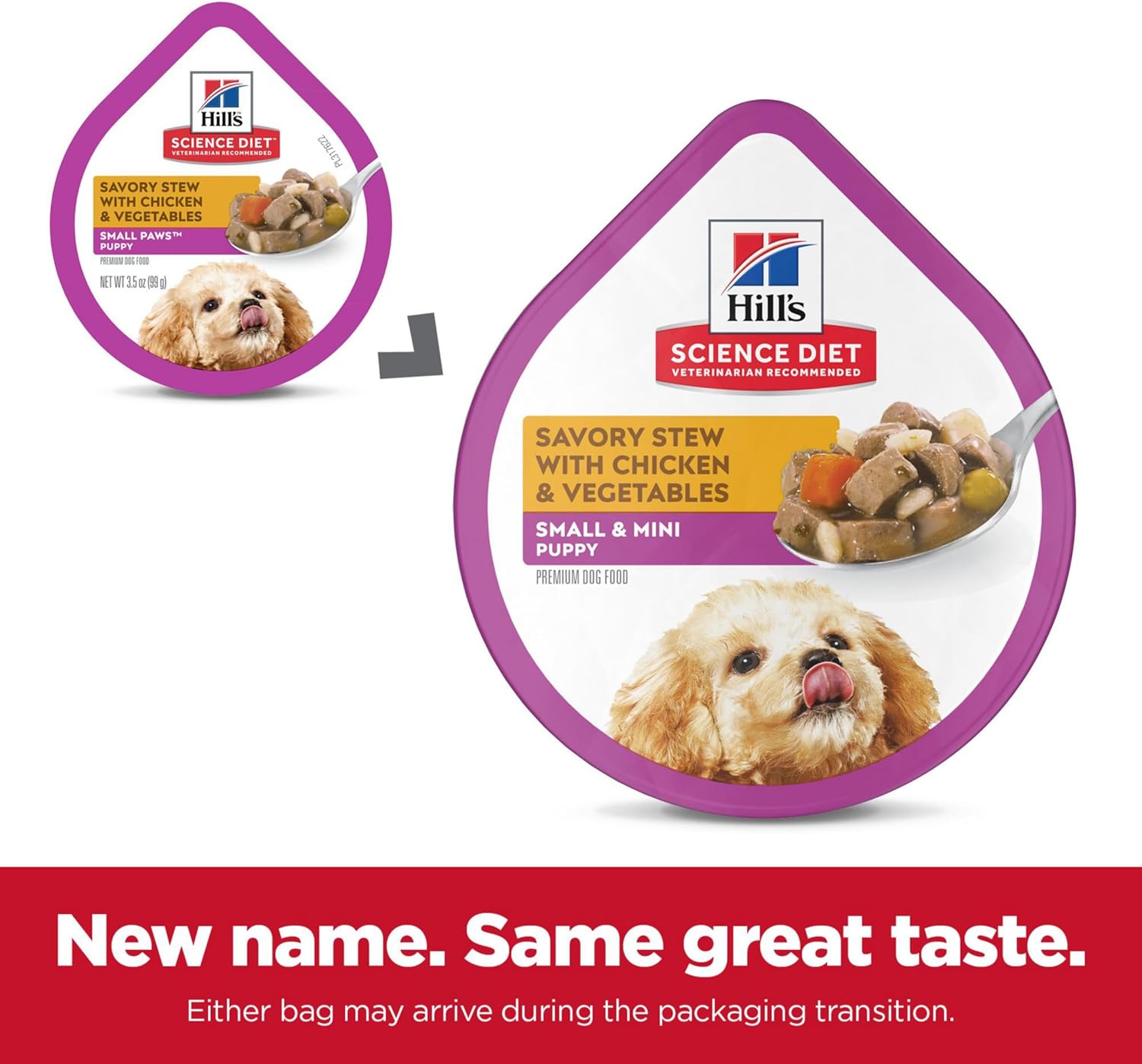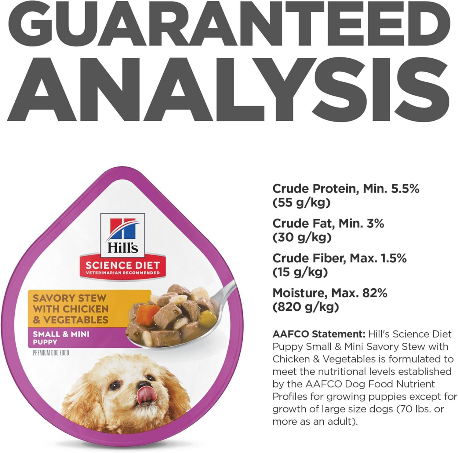 Hill’s Science Diet Puppy Small & Mini Savory Stew with Chicken & Vegetables is a delicious small-breed dog food containing high-quality ingredients to ensure availability of key nutrients for the healthy development of your small-breed puppy. These convenient, single-serve trays contain real chicken, brown rice, and a medley of delectable vegetables all smothered in tasty gravy. This small dog food is made with natural ingredients and easy for your young dog to digest. Big on Love, Small in Size, this little dog food is a great source of high-quality protein, you’ll help support muscle development in your tiny pup.