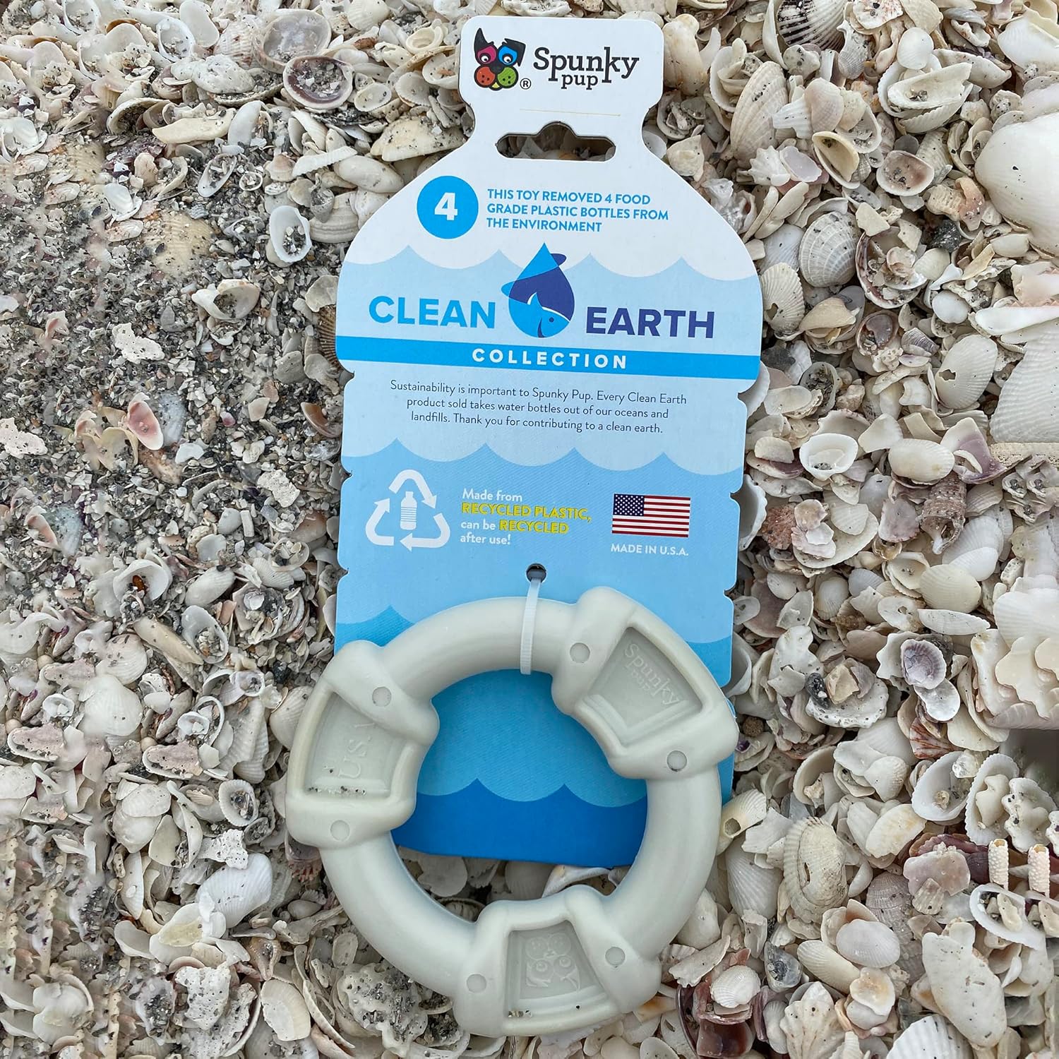 <br> Product Dimensions : 4.25 x 1 x 9.25 inches; 3.21 ounces <br> Item model number : 7101 <br> Date First Available : July 25, 2020 <br> Manufacturer : Lafaeyette Bay Products LLC <br> ASIN : B08CM2GF1T <br> Best Sellers Rank: #56,941 in Pet Supplies (See Top 100 in Pet Supplies) #888 in Dog Chew Toys <br> Customer Reviews: 4.2 4.2 out of 5 stars 134 ratings var dpAcrHasRegisteredArcLinkClickAction; P.when('A', 'ready').execute(function(A) { if (dpAcrHasRegisteredArcLinkClickAction !== true) { dpAcrHasRegisteredArcLinkClickAction = true; A.declarative( 'acrLink-click-metrics', 'click', { "allowLinkDefault": true }, function (event) { if (window.ue) { ue.count("acrLinkClickCount", (ue.count("acrLinkClickCount") || 0) + 1); } } ); } }); P.when('A', 'cf').execute(function(A) { A.declarative('acrStarsLink-click-metrics', 'click', { "allowLinkDefault" : true }, function(event){ if(window.ue) { ue.count("acrStarsLinkWithPopoverClickCount", (ue.count("acrStarsLinkWithPopoverClickCount") || 0) + 1); } }); }); <br>RECYCLED FUN: Love your pet and the planet. Add Spunky pup’s Clean Earth Recycled Ring to your collection; Made from recycled plastic, the heavy-duty durable ring combines texture and an irresistible flavoring that your pet will want to gnaw on all day!<br>TEXTURED SHAPE: The circular shape is easy for your pet to hold between the paws; The firm texture with chicken flavoring entices your pet to gnaw at the ring which promotes healthy gums and removes tartar from teeth as your puppy or small dog plays<br>ECO-FRIENDLY: Each ring toy redirects waste from up to 4 plastic water bottles from ending up in oceans, waterways, and landfills; The recycled Clean Earth toys can be recycled when your dog is done playing with it; which means an Infinite Recycling Loop!<br>PERFECT SIZE: Durable, the 4”x4”x.8” dog toy is easy to clean with soap and water and is dishwasher safe; The Clean Earth Collection is available in multiple shapes and sizes; Save the planet and collect them all! They make the paw-fect gift<br>INNOVATIVE TOYS: Spunky Pup is dedicated to producing high-quality, interactive, and eco-friendly toys to handle the play needs of all spunky pups; Made in the USA