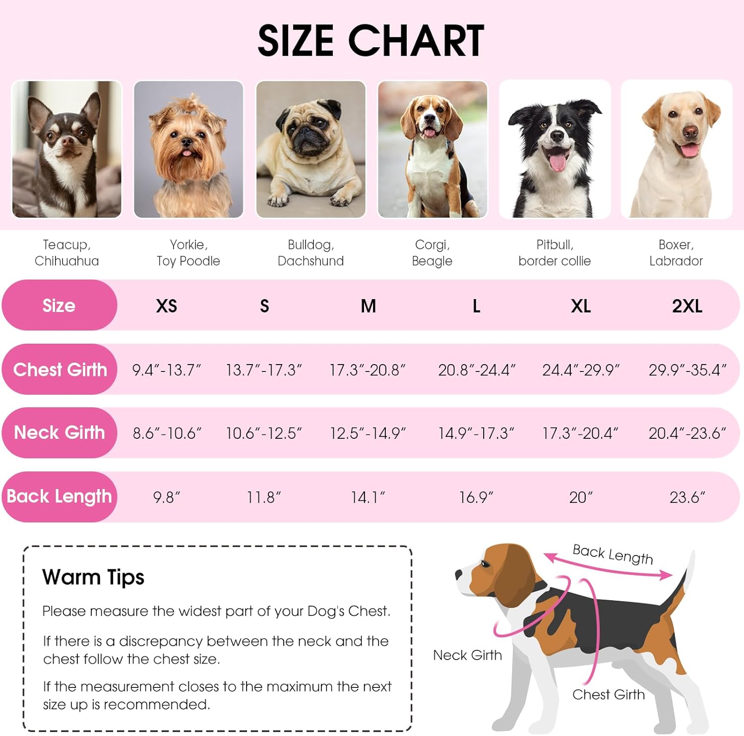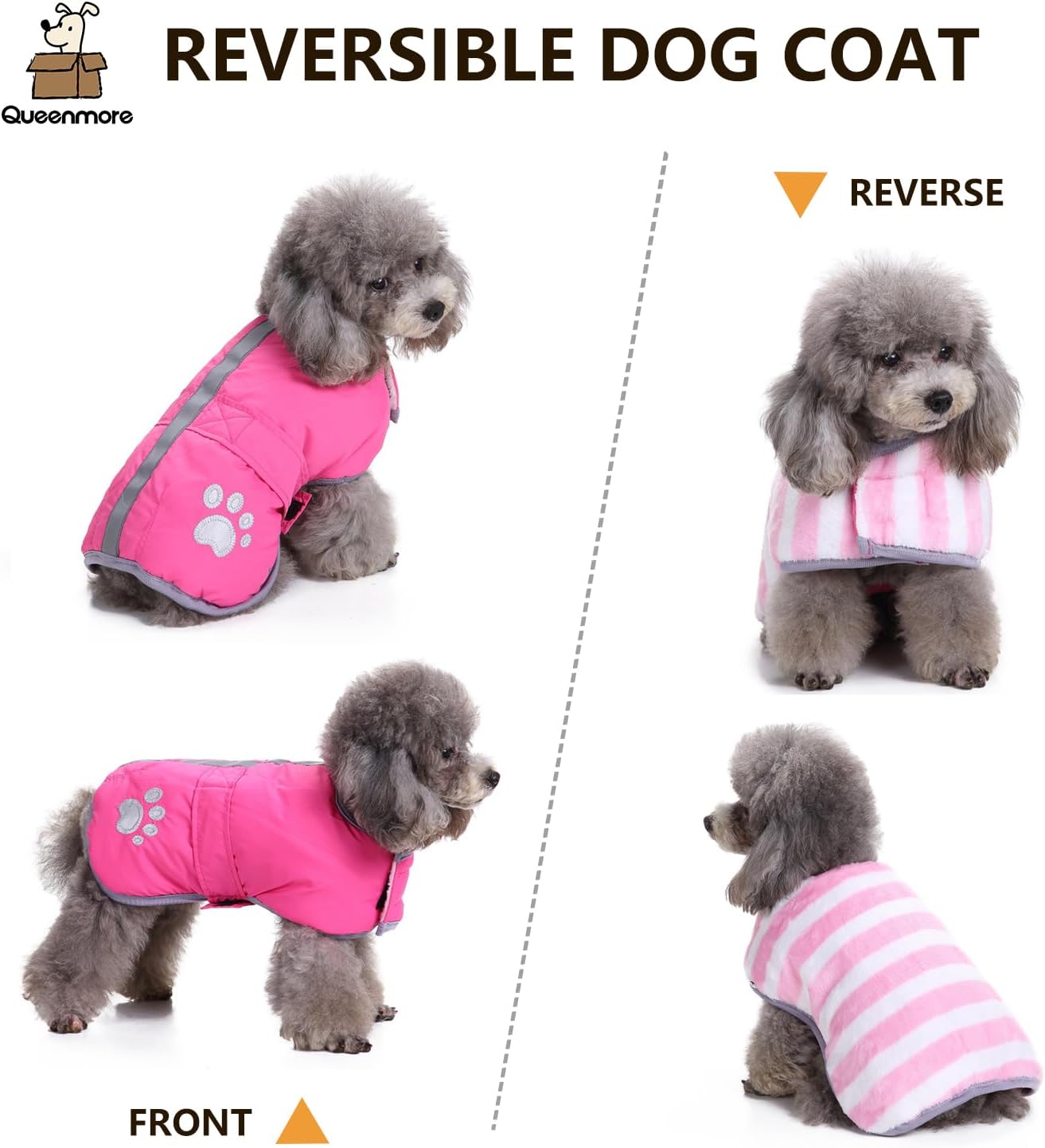 <br> Is Discontinued By Manufacturer : No <br> Package Dimensions : 7.52 x 7.52 x 1.18 inches; 3.2 ounces <br> Item model number : CA-Queenmore-344435-Pink-S-1 <br> Date First Available : September 21, 2017 <br> Manufacturer : Queenmore <br> ASIN : B075SVZ9R6 <br> Best Sellers Rank: #6,695 in Pet Supplies (See Top 100 in Pet Supplies) #34 in Dog Cold Weather Coats <br> Customer Reviews: 4.4 4.4 out of 5 stars 7,583 ratings var dpAcrHasRegisteredArcLinkClickAction; P.when('A', 'ready').execute(function(A) { if (dpAcrHasRegisteredArcLinkClickAction !== true) { dpAcrHasRegisteredArcLinkClickAction = true; A.declarative( 'acrLink-click-metrics', 'click', { "allowLinkDefault": true }, function (event) { if (window.ue) { ue.count("acrLinkClickCount", (ue.count("acrLinkClickCount") || 0) + 1); } } ); } }); P.when('A', 'cf').execute(function(A) { A.declarative('acrStarsLink-click-metrics', 'click', { "allowLinkDefault" : true }, function(event){ if(window.ue) { ue.count("acrStarsLinkWithPopoverClickCount", (ue.count("acrStarsLinkWithPopoverClickCount") || 0) + 1); } }); }); <br>COLD WEATHER DOG COAT: Keep your dog warm and cozy with the overcoat, classic designed cold-weather jacket. It is constructed with sturdy, durable and breathable materials.<br>SIZE NOTE - Dog vest is available in 8 sizes. Please measure your dog before purchasing to ensure the perfect fit.Your baby usually wears size S doesn't mean all size S will fit him/herIf any of the measurements are between two sizes, please choose the large size.<br>DESIGN CREATIVE: Exquisite stitching,Easy Hook & LoopClosure, Easily put on and take off. comfortable belly part, warm fleece Lining.<br>WATERPROOF WINTER COAT: Dog cold weather coat is waterproof with a soft fleece lining so it will keep your dog cozy and dry while out in the rain, wind and snow.<br>REVERSIBLE & REFLECTIVE: Reversible dog coat in colorful will keep warm and cozy throughout those chilly fall months, and it's also the perfect dog winter coat
