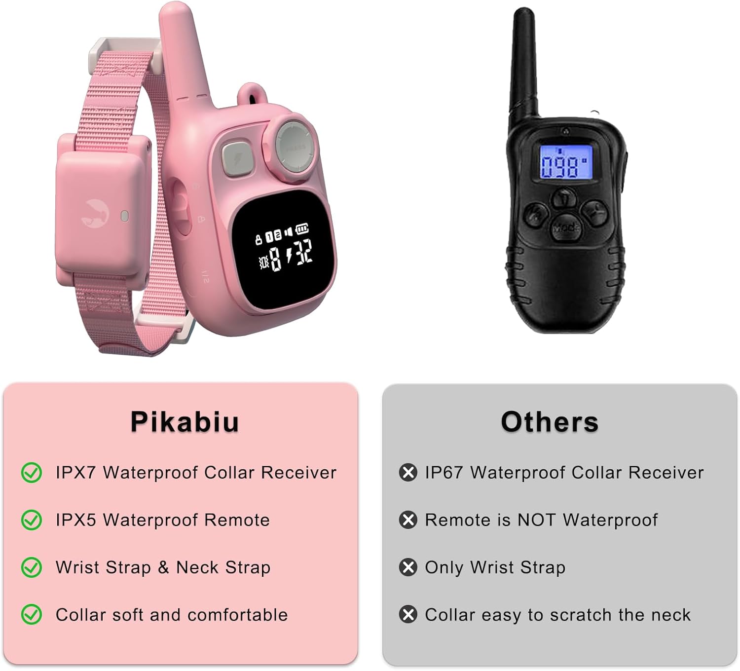 <br> Product Dimensions : 6.3 x 6.3 x 0.04 inches; 11.68 ounces <br> Item model number : p-collar 628 <br> Batteries : 2 Lithium Polymer batteries required. (included) <br> Date First Available : June 26, 2023 <br> Manufacturer : Pikabiu <br> ASIN : B0C5HB8VHJ <br> Best Sellers Rank: #41,151 in Pet Supplies (See Top 100 in Pet Supplies) #226 in Electronic Training Collars <br> Customer Reviews: 4.3 4.3 out of 5 stars 271 ratings var dpAcrHasRegisteredArcLinkClickAction; P.when('A', 'ready').execute(function(A) { if (dpAcrHasRegisteredArcLinkClickAction !== true) { dpAcrHasRegisteredArcLinkClickAction = true; A.declarative( 'acrLink-click-metrics', 'click', { "allowLinkDefault": true }, function (event) { if (window.ue) { ue.count("acrLinkClickCount", (ue.count("acrLinkClickCount") || 0) + 1); } } ); } }); P.when('A', 'cf').execute(function(A) { A.declarative('acrStarsLink-click-metrics', 'click', { "allowLinkDefault" : true }, function(event){ if(window.ue) { ue.count("acrStarsLinkWithPopoverClickCount", (ue.count("acrStarsLinkWithPopoverClickCount") || 0) + 1); } }); }); <br>3 Training Modes Switchable: Pikabiu dog shock collar has 3 training modes: beep, vibration (1-8 levels), safety shock (1-32 levels). The waterproof remote control allows you to have maximum flexibility in outdoor activities. This shock collar is lightweight and easy to carry, and is also suitable for cats, puppies, medium or large dogs. Suitable for pets with neck circumference of 6-27 inches<br>Smallest and Lightest Receivers: This dog training collar ideal for all breed dogs (5-120 lbs) to wear comfortably. The shock collar receiver's weight only 2.4oz per piece, this is no burden on small dog's neck. NOTE: If you need a NO Shock function collar, you can remove the receiver's metal probes, so that wearing the electronic training collars is more comfortable for your dogs<br>Fast Charging and Long Lasting Battery: Rechargeable shock e collar and remote take 2-3 hours to be fully charged. The rechargeable shock collar receiver can last for about 50 days in working time, and the remote can last for about 30 days in working time. And all of them about 180 days in standby time. The long battery runtime is a true lifesaver on those camping or tailgating weekends<br>Security Lock and 1800FT Remote: The Bark Collar can be remotely controlled for training ranges approaching 1800-2000FT, which makes sure you can enjoy the training time with your dog in the park, the backyard, at the beach, or anywhere else without delay. Come with security keypad lock, which significantly prevents any accidental pushes while carrying the remote<br>BUY NO WORRY GET TWO Gifts: We offers 30-day FREE return policy and 12-month replacement guarantee. Any questions please contact us by Amazon. We will respond you within 24hrs. Buy Pikabiu dog shock collar GET TWO Gifts-Neck Strap and Training Clicker. The two types of Straps within the package you can easily carry the remote control (hanging on the neck or wrist)