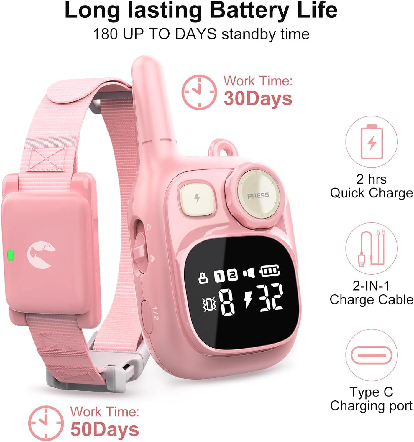 <p class="aplus-p2"> Pikabiu dog training collar device Features 3 safe modes: Beep(standard), Vibrate (adjustable 1-8 Levels) and Shock (adjustable 0-32 Levels with Unique contact spring sheet design used for long/thick haired dogs), which can help you train your dog behave well and correcting bad behaviors in time. And the pink dog training collar remote has dual channels, so you can train 2 dogs at the same time. </p>