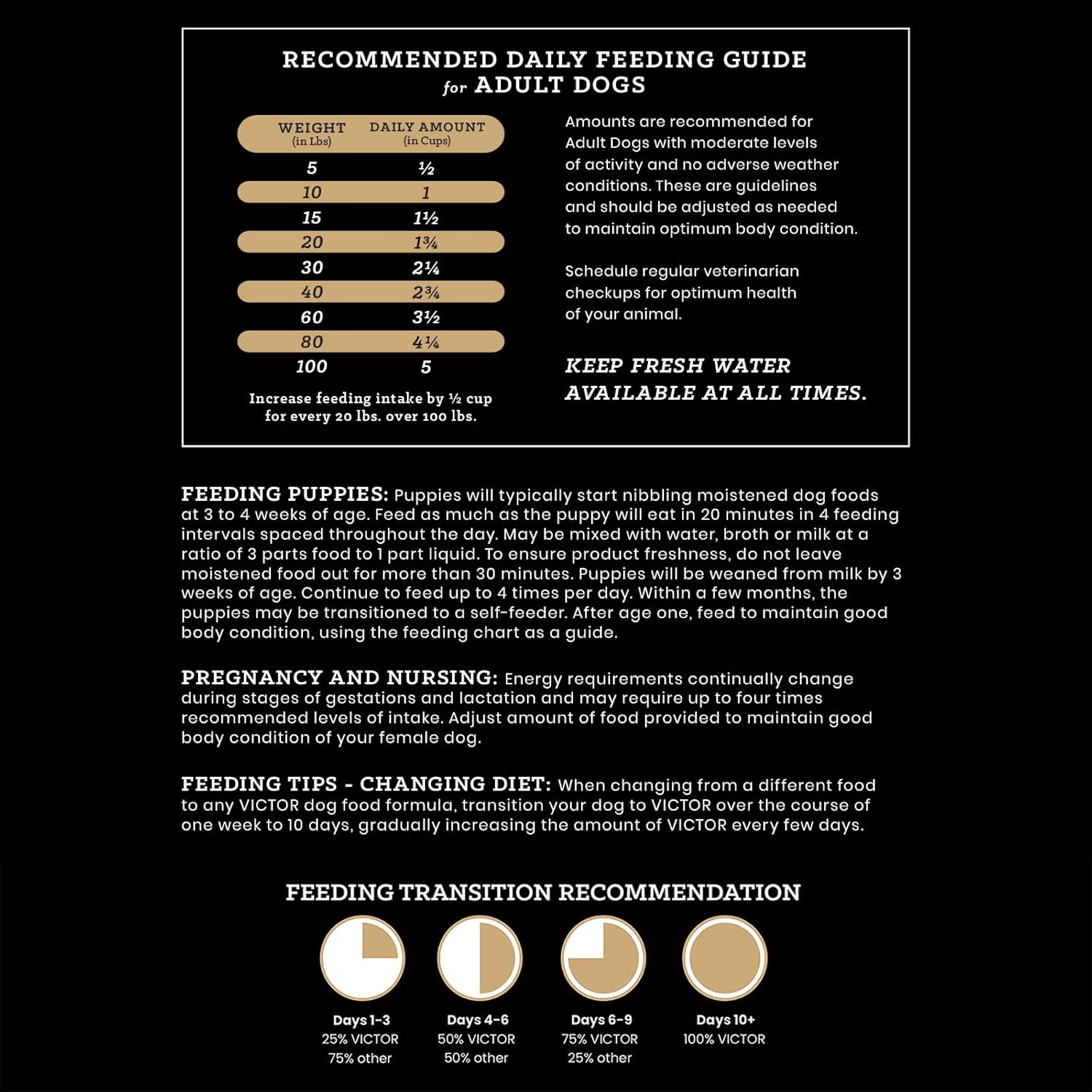 MADE IN THE USA: We proudly produce every bag of VICTOR kibble in our own Texas-based facility and do not waver in our commitment to high-quality nutrition. A majority of ingredients of our pet food come from ranches, farms and other trusted suppliers who are within a day’s drive of our East Texas plant.