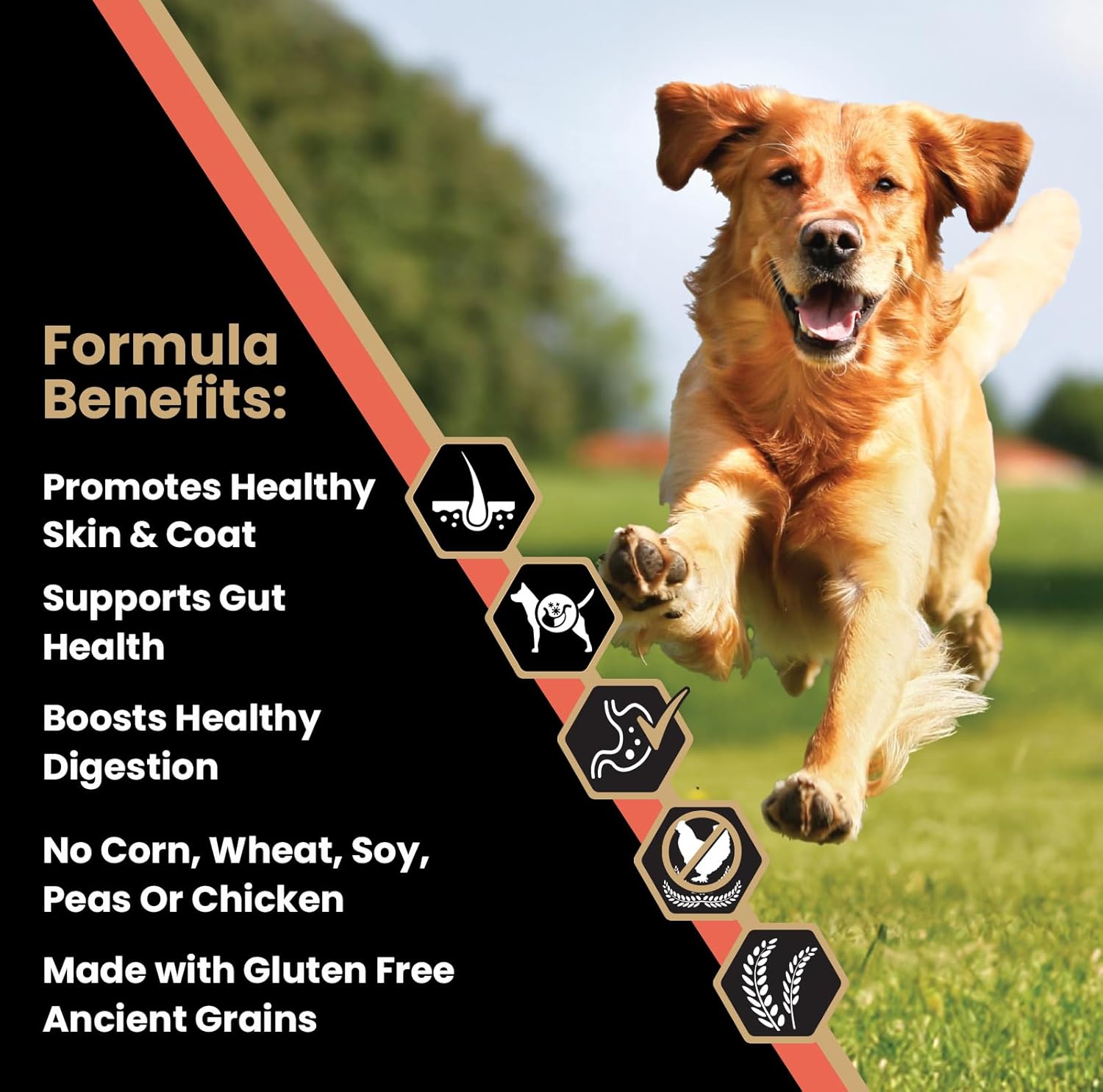 SENSITIVE SKIN & STOMACH DOG FOOD: Made with gluten free grains and no chicken, this kibble is ideal for sensitive dogs prone to allergies. It is formulated with proper levels of Omega 3, Omega 6 and Vitamin E to nourish a healthy skin and coat.