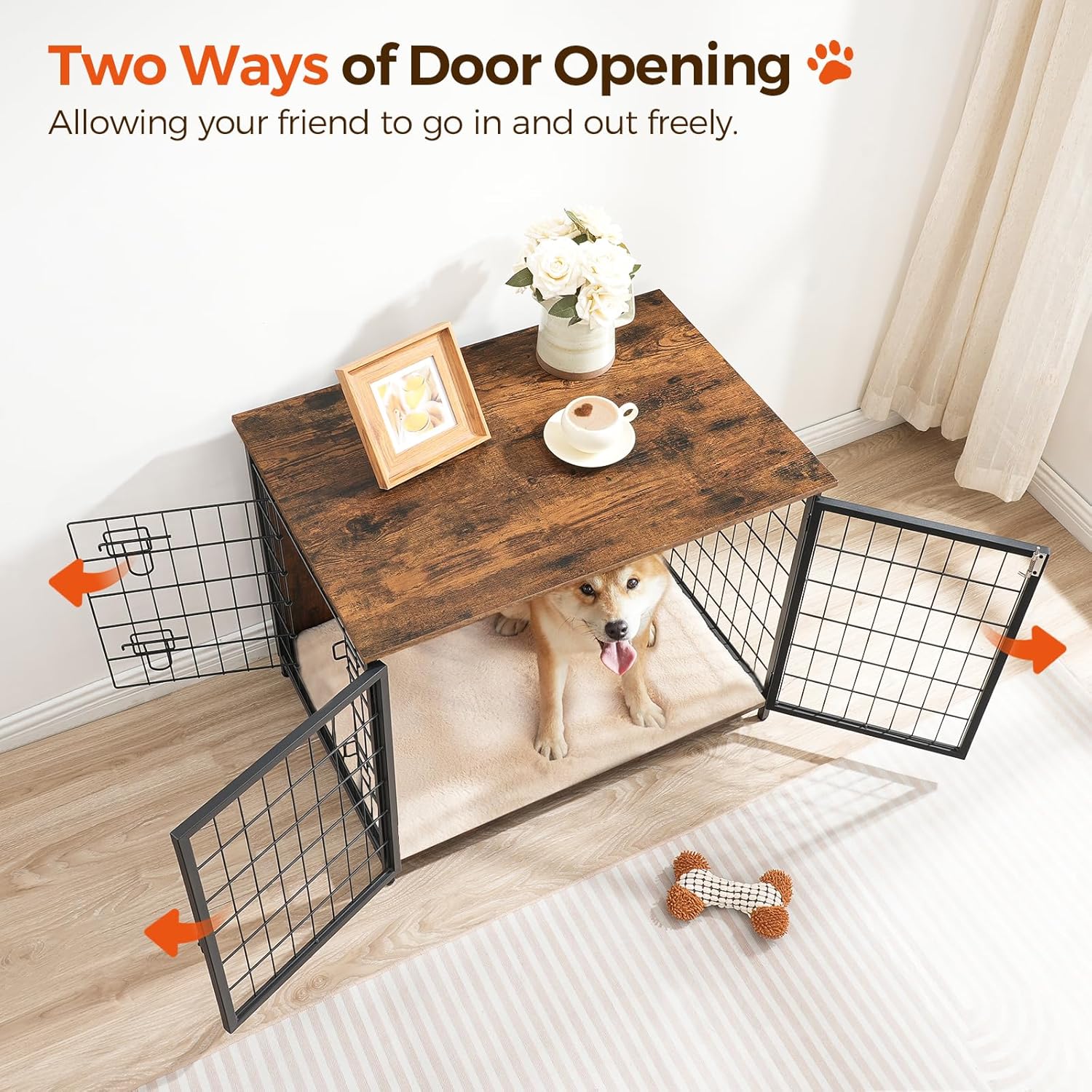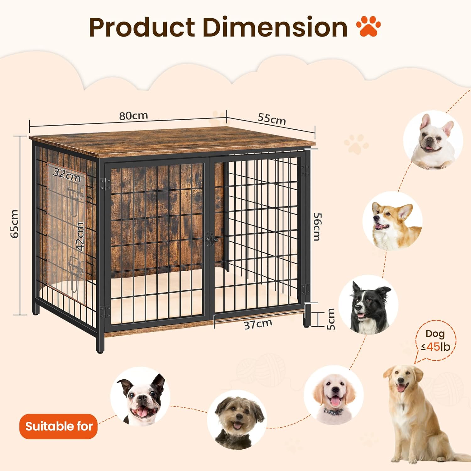 <br> Product Dimensions : 31.5 x 21.7 x 25.6 inches; 32.63 Pounds <br> Item model number : DCHR0701Z1 Dog Crate Furniture <br> Date First Available : July 6, 2023 <br> Manufacturer : MAHANCRIS <br> ASIN : B0BPD22F34 <br> Best Sellers Rank: #31,516 in Pet Supplies (See Top 100 in Pet Supplies) #41 in Furniture-Style Dog Crates <br> Customer Reviews: 3.8 3.8 out of 5 stars 275 ratings var dpAcrHasRegisteredArcLinkClickAction; P.when('A', 'ready').execute(function(A) { if (dpAcrHasRegisteredArcLinkClickAction !== true) { dpAcrHasRegisteredArcLinkClickAction = true; A.declarative( 'acrLink-click-metrics', 'click', { "allowLinkDefault": true }, function (event) { if (window.ue) { ue.count("acrLinkClickCount", (ue.count("acrLinkClickCount") || 0) + 1); } } ); } }); P.when('A', 'cf').execute(function(A) { A.declarative('acrStarsLink-click-metrics', 'click', { "allowLinkDefault" : true }, function(event){ if(window.ue) { ue.count("acrStarsLinkWithPopoverClickCount", (ue.count("acrStarsLinkWithPopoverClickCount") || 0) + 1); } }); }); <br>High Compatibility: The dog crate furniture measures 31.5"L x 21.7"W x 25.6"H, very suitable for various small and middle dogs like french bulldogs, corgi dogs, dachshunds, etc. Please choose the right crate upon your pet's measurements<br>Wooden Dog Crate with Dog Bed: The removable soft cushion of this indoor dog kennel is simple to wash and can remain clean anytime. A dog crate made of quality panels and metal with the cozy bed lets your dog rest better in a secure space<br>Unique End Table: The heavy duty dog crate has a strong top with a load up to 154 lb that is ideal for keeping your coffee, magazines, books etc. to spend free time with your furry pet! The rustic style makes it not only a dog crate, but also a beautiful furniture<br>Two Choices of Door Opening: MAHANCRIS dog kennel furniture has a front double door and one side door for your lively dog to access easily so that you can choose to open one of the 2 doors to interact with your dog intimately<br>Assembly is a Breeze: The package contains detailed instructions and tools needed for installation, and the assembly process will not cause you any trouble. You can complete all the steps with ease, no waiting