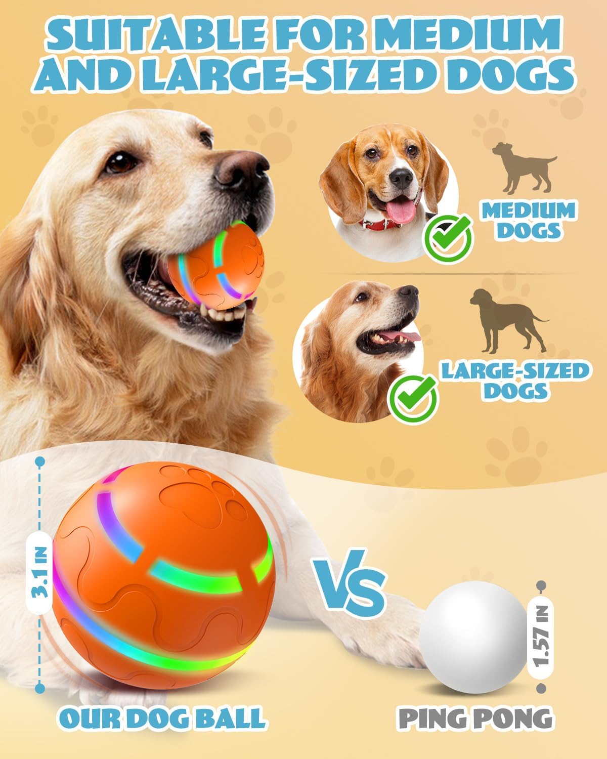 <br> Product Dimensions : 3.35 x 3.35 x 3.94 inches; 8.11 ounces <br> Item model number : O1 <br> Batteries : 1 Nonstandard Battery batteries required. (included) <br> Date First Available : August 1, 2025 <br> Manufacturer : Shenzhen Hailiwang Technology Co., Ltd. <br> ASIN : B0F2M435JY <br> Best Sellers Rank: #131,773 in Pet Supplies (See Top 100 in Pet Supplies) #1,595 in Dog Toy Balls <br> Customer Reviews: 3.1 3.1 out of 5 stars 61 ratings var dpAcrHasRegisteredArcLinkClickAction; P.when('A', 'ready').execute(function(A) { if (dpAcrHasRegisteredArcLinkClickAction !== true) { dpAcrHasRegisteredArcLinkClickAction = true; A.declarative( 'acrLink-click-metrics', 'click', { "allowLinkDefault": true }, function (event) { if (window.ue) { ue.count("acrLinkClickCount", (ue.count("acrLinkClickCount") || 0) + 1); } } ); } }); P.when('A', 'cf').execute(function(A) { A.declarative('acrStarsLink-click-metrics', 'click', { "allowLinkDefault" : true }, function(event){ if(window.ue) { ue.count("acrStarsLinkWithPopoverClickCount", (ue.count("acrStarsLinkWithPopoverClickCount") || 0) + 1); } }); }); <br>【Choose with Confidence】JR JUMIAR's pet toy ball takes pet safety into consideration. We use comprehensive TPU anti-bite safety materials and transfer the charging port to the internal motor, allowing our furry friends to play with its toys to their heart's content. However, please note that because it is an electronic product, this dog ball is not suitable for aggressive chewers.<br>【Remote Control】The remote control function is a feature we added for pet owners to enjoy interacting with your beloved pets, and there is also an automatic function to let the fur kids play on their own. Offering every pet owner two options.<br>【Dog Preferences】Will dogs like colored lights? Does it prefer more active toy balls? Our multi-mode dazzling colorful bouncing ball can all meet the dog's preferences, you can let your dog friend choose whether to turn on the lights or turn on the crazy mode, lead your pet to make the choice.<br>【USB Rechargeable】The smart jumping ball for dogs has a built-in 500mAh battery, equipped with a charging cable for easy charging, it takes about 2 hours to fully charge, after a simple charge the electric dog ball toy can provide 1 to 4 hours of interaction time<br>【Ideal for Medium-Large Dogs】This dog boredom toy measures 3.2 inches in diameter and is great for medium to large dogs. It is suitable for most floors indoors and outdoors. Please teach your dog how to interact with the ball at the beginning。