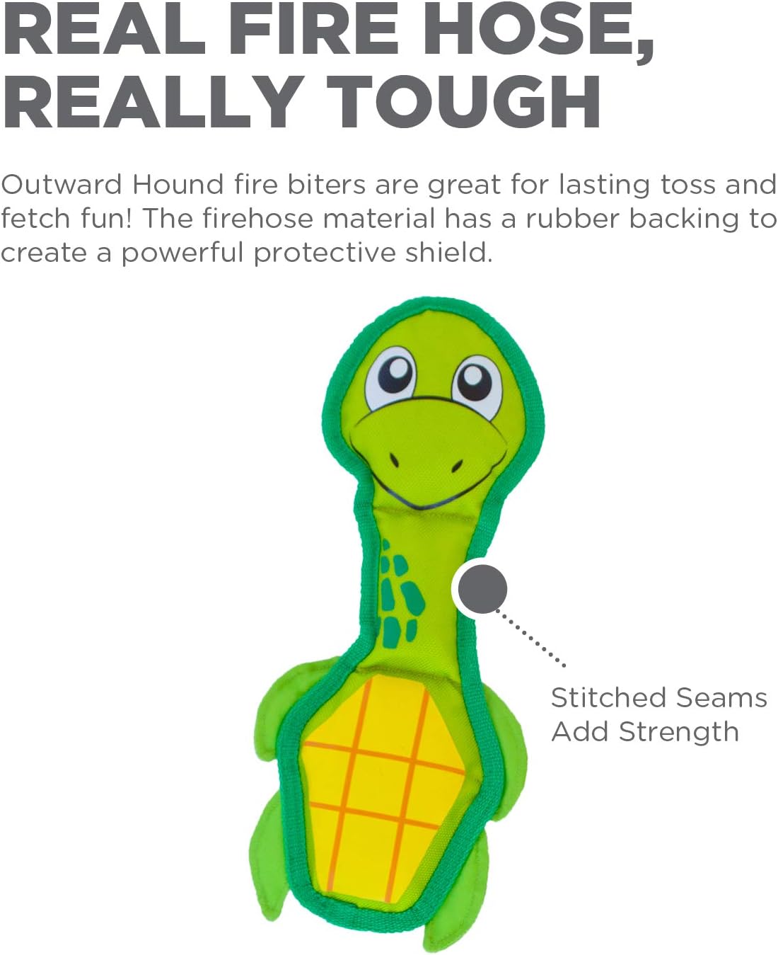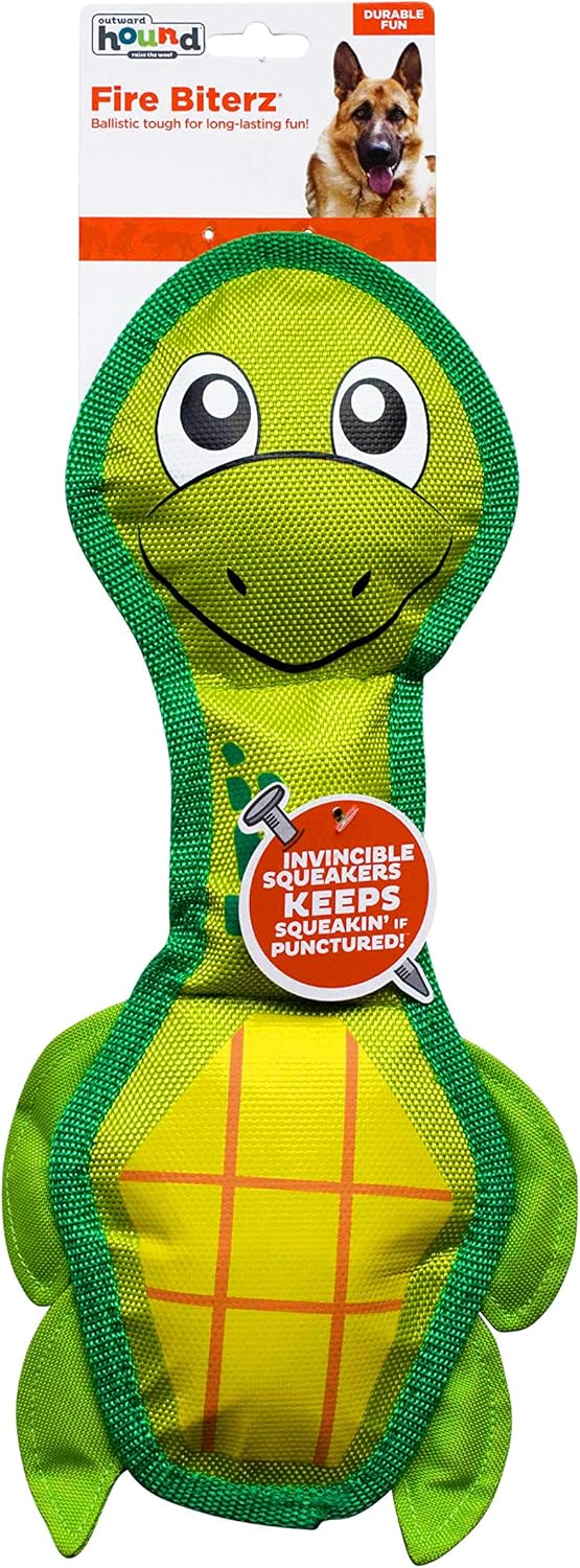 Outward Hound’s Fire Biterz are a more durable version of your dog’s favorite plush toy. Unlike traditional plush toys, Fire Biterz dog toys are designed with a special K9 Tuff lining, firehose material, and our signature squeakers to withstand hours of play. With a variety of sizes, ranging from small to large, and shapes to fit any dog’s personality, Fire Biterz are a standout addition to your pup’s toy collection. While these plush toys are constructed to last, keep in mind they are not meant as a primary chew toy. Toy contains polyfill. WARNING:For dogs only. Product contains one continuous thread to enhance durability. If thread unravels, please discontinue use. Keep out of reach of children. When choosing a toy, make sure to choose an appropriate size toy for your dog. No toy is indestructible. ALWAYS supervise your dog when using a toy of any kind. Inspect toys regularly for damage and remove and replace if broken, or if parts become separated, as serious injury may result.