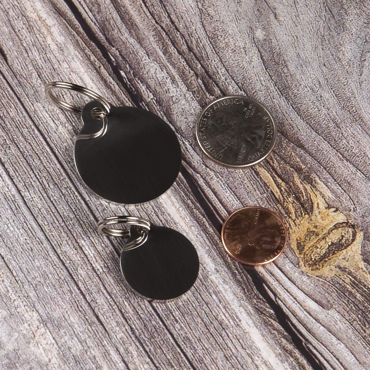 <br>Our personalized stainless steel pet tags are incredibly durable and long-lasting.<br>The permanent laser engraving is clear to read on an attractive, polished tag. Available in 2 sizes for pets small to large.<br>This Round shaped dog tag can be custom engraved on both sides with up to 8 lines of personalized text, plenty of room for all of your pet’s important ID.<br>When it comes to long-lasting durability our 100% stainless steel pet tags can withstand the most active dog or cat. Split ring included<br>Regular Size = Approx. 1.44 inches x 1.24 inches.