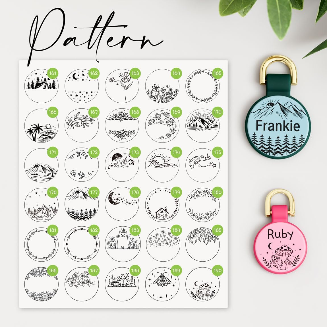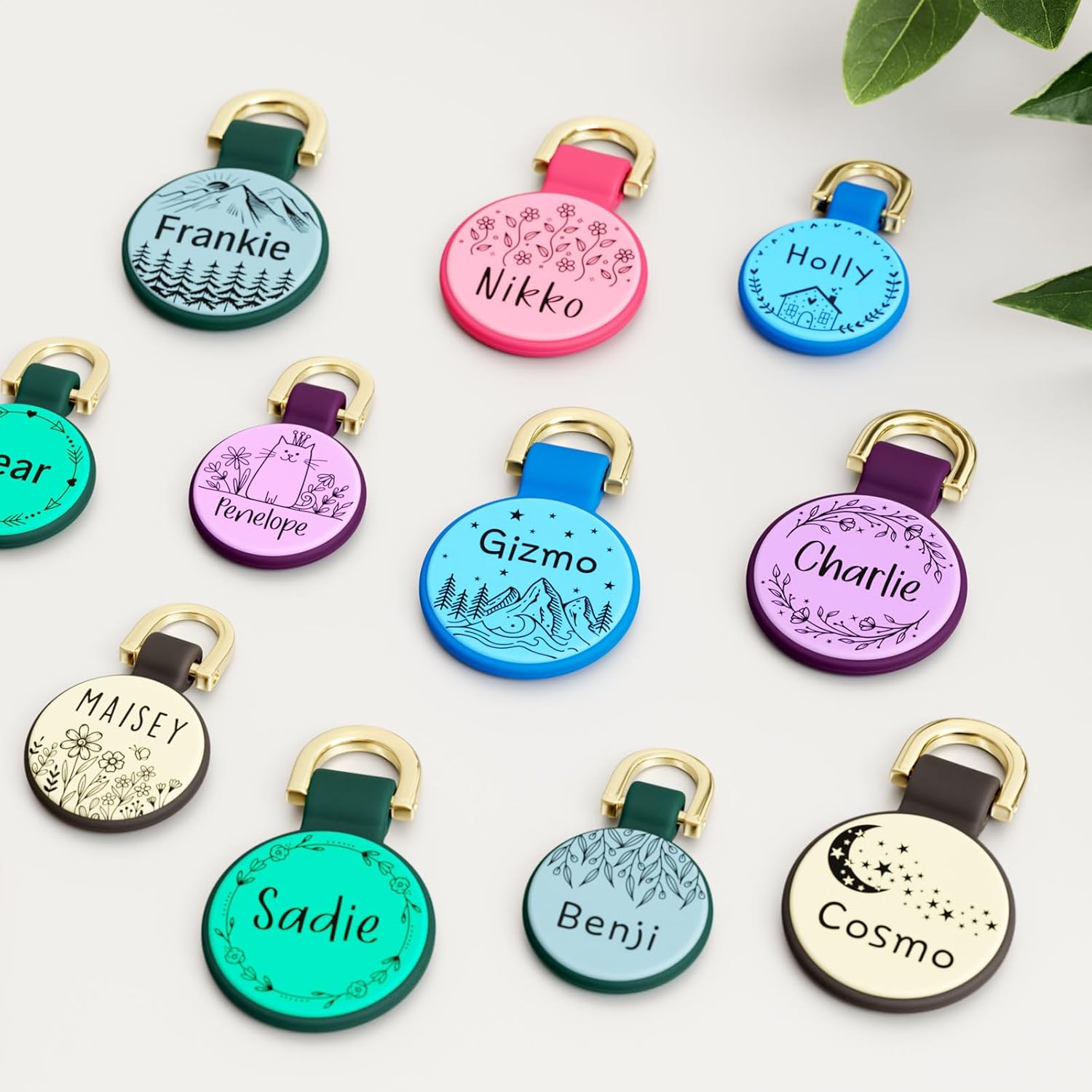 <br>Light & Silent silicone dog ID tags, make your time quiet and peaceful with your furry baby<br>Highly tear-resistant silicone material, wider hanging heard and clear permanent laser engraving ensure that our dog tags are durable and easy to read! Water proof and Fade proof<br>The threaded detachable connecting buckle can better prevent the tag from falling off the pet collar<br>Double-sided deeply engraved dog tag, Eye-catching colors and various styles. Ability to preview your built tag on the customization page<br>Regular size (1.3 inches), perfect for medium-sized and larger dogs<br>Small size (1.06 inches), perfect for cats and smaller breeds