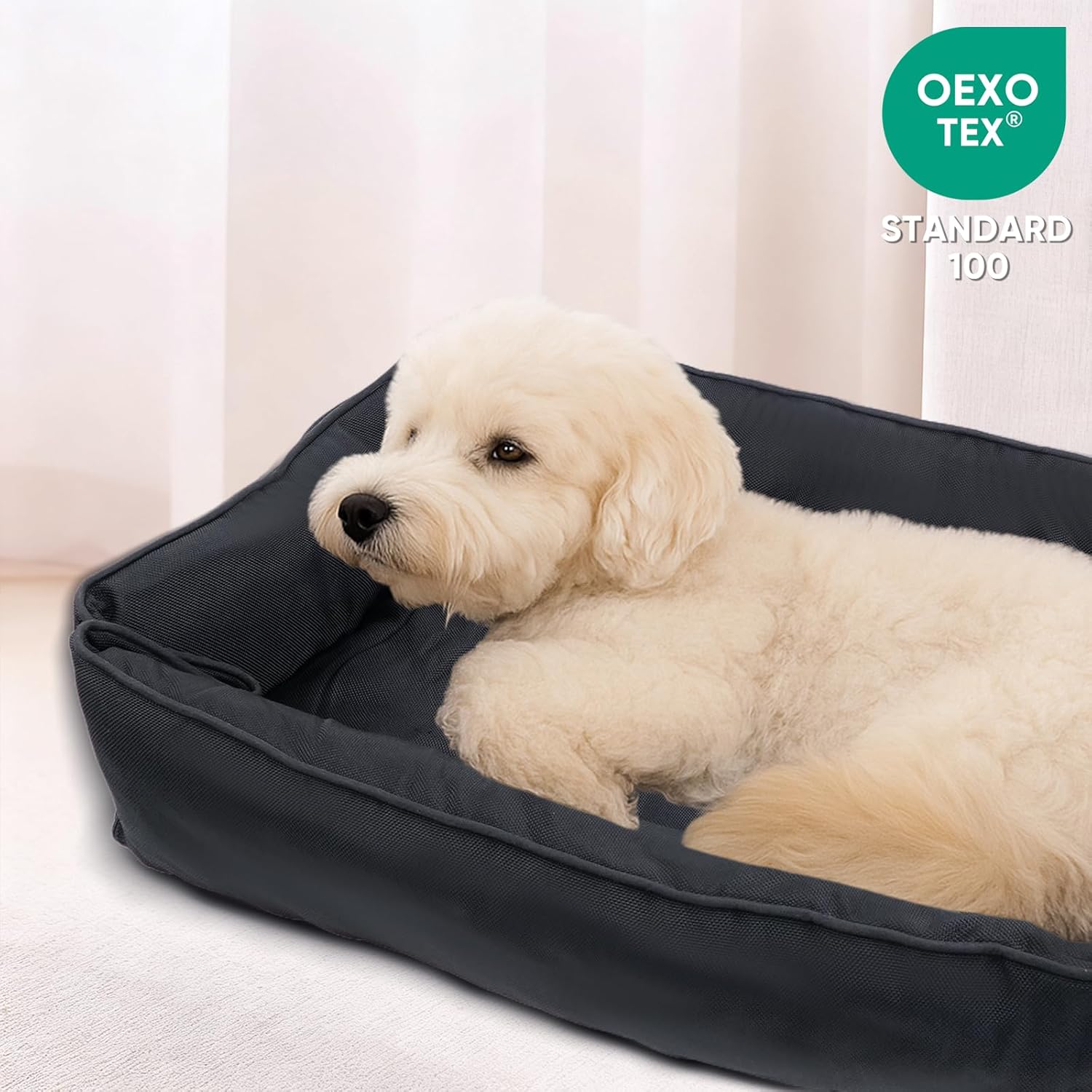 <br> Product Dimensions : 23 x 7 x 15 inches; 2.67 Pounds <br> Item model number : NJBGW-Black <br> Date First Available : August 7, 2025 <br> Manufacturer : FuzzyTrek <br> ASIN : B0FLK22SHJ <br> Best Sellers Rank: #27,513 in Pet Supplies (See Top 100 in Pet Supplies) #387 in Dog Beds <br> Customer Reviews: 4.9 4.9 out of 5 stars 36 ratings var dpAcrHasRegisteredArcLinkClickAction; P.when('A', 'ready').execute(function(A) { if (dpAcrHasRegisteredArcLinkClickAction !== true) { dpAcrHasRegisteredArcLinkClickAction = true; A.declarative( 'acrLink-click-metrics', 'click', { "allowLinkDefault": true }, function (event) { if (window.ue) { ue.count("acrLinkClickCount", (ue.count("acrLinkClickCount") || 0) + 1); } } ); } }); P.when('A', 'cf').execute(function(A) { A.declarative('acrStarsLink-click-metrics', 'click', { "allowLinkDefault" : true }, function(event){ if(window.ue) { ue.count("acrStarsLinkWithPopoverClickCount", (ue.count("acrStarsLinkWithPopoverClickCount") || 0) + 1); } }); }); <br>Durable Waterproof Oxford Fabric – Our waterproof dog bed is made with heavy-duty Oxford cloth, designed as an indestructible dog bed and chew proof dog bed for aggressive chewers. Perfect as an outdoor dog bed or crate bed, keeping your pup comfortable and dry in any setting.<br>2-in-1 Convertible Design – Unique zipper system allows you to zip it up into a cozy dog bed sofa or unzip to transform into a spacious dog bed mat. Foldable and portable, this washable dog bed adapts to your pet’s needs whether at home, travel, or kennel.<br>Orthopedic Support with PP Cotton – Stuffed with safe eco-friendly PP cotton, our orthopedic dog bed provides soft yet firm support for spine and neck. Ideal for puppies, medium dogs, or senior pets, helping relieve pressure and ensuring restful sleep.<br>Non-Slip & Easy to Clean – The anti-slip bottom keeps the dog couch bed steady on hardwood or tile floors, while the washable dog bed design makes cleaning effortless. Simply toss it in the washing machine (no dryer) to keep the dog beds washable and fresh.<br>Versatile for Every Space – Measuring 32x26x3” when flat and 26x18x6” when folded, this dog bed large size dog solution fits crates, kennels, couches, and outdoor spaces. Stylish black and gray colors blend into any home décor while offering a cozy pet bed sanctuary.